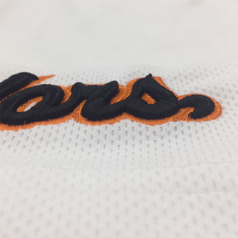 ベースボールシャツなどスポーツウェアには3D刺繍がおススメです。