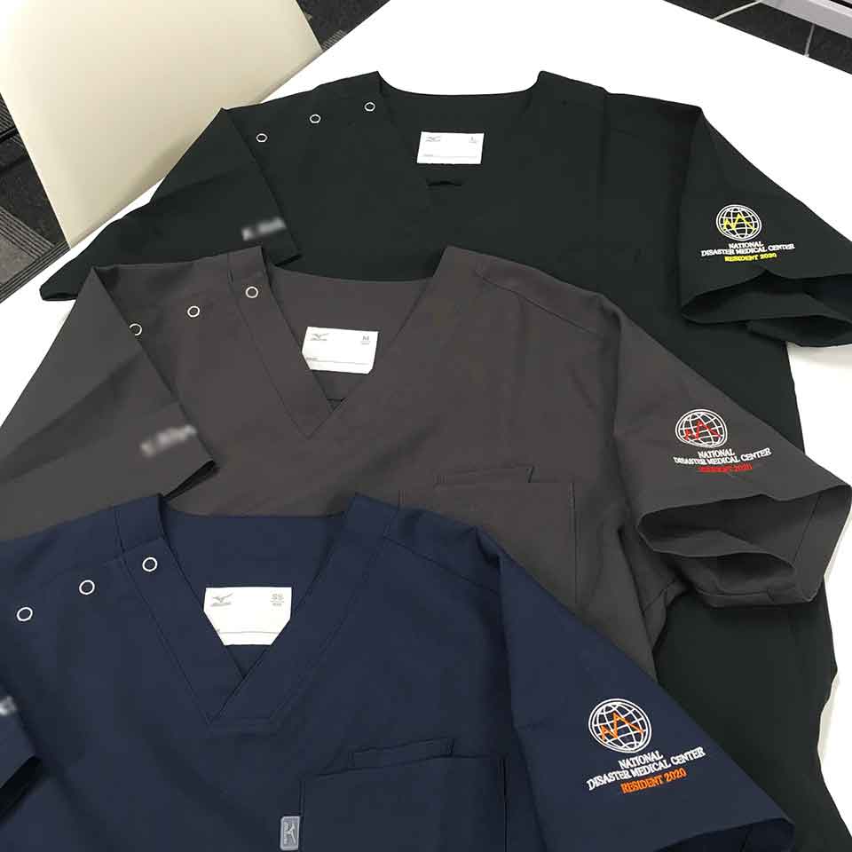 デザイン刺繍 国立災害医療センター2020様 Cランク袖 国立災害医療センター2020様スクラブロゴマーク刺繍デザインのご紹介です。このたびは製作のご依頼ありがとうございました。 このデザインについて 【刺繍加工のポイント】 マークの下3段の文字の書体はソウジャーンですが、そのままのフォントよりも線を太らせています。 刺繍したときに綺麗に仕上げるためです。 刺繍位置 :左袖 刺繍サイズ:左右7.5cm 刺繍カラー:2色 ホワイト×イエロー、×レッド、×オレンジ 使用スクラブ:MIZUNO MZ-0021 ネイビー・ブラック・チャコール この記事をシェア
