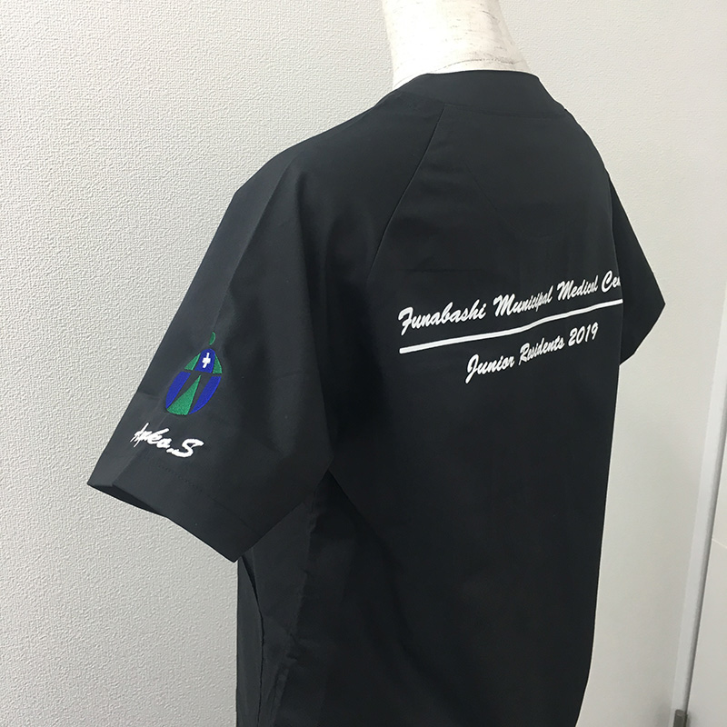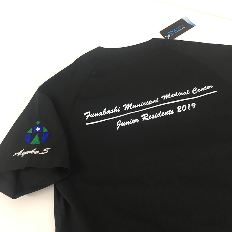 デザイン刺繍 船橋市立医療センター2019年研修医様 MZ-0120 Bランクシンプルロゴマーク袖 船橋市立医療センター2019年研修医様スクラブロゴマーク刺繍デザインのご紹介です。 製作のご依頼ありがとうございました。 このデザインについて 【刺繍加工のポイント】 すべてたたみ打ちで加工しております。 刺繍位置 :左袖 刺繍サイズ:病院ロゴ 天地5.5cm 刺繍カラー:3色 ホワイト・ロイヤルブルー・グリーン 背中加工 :シルクプリント1色 この記事をシェア