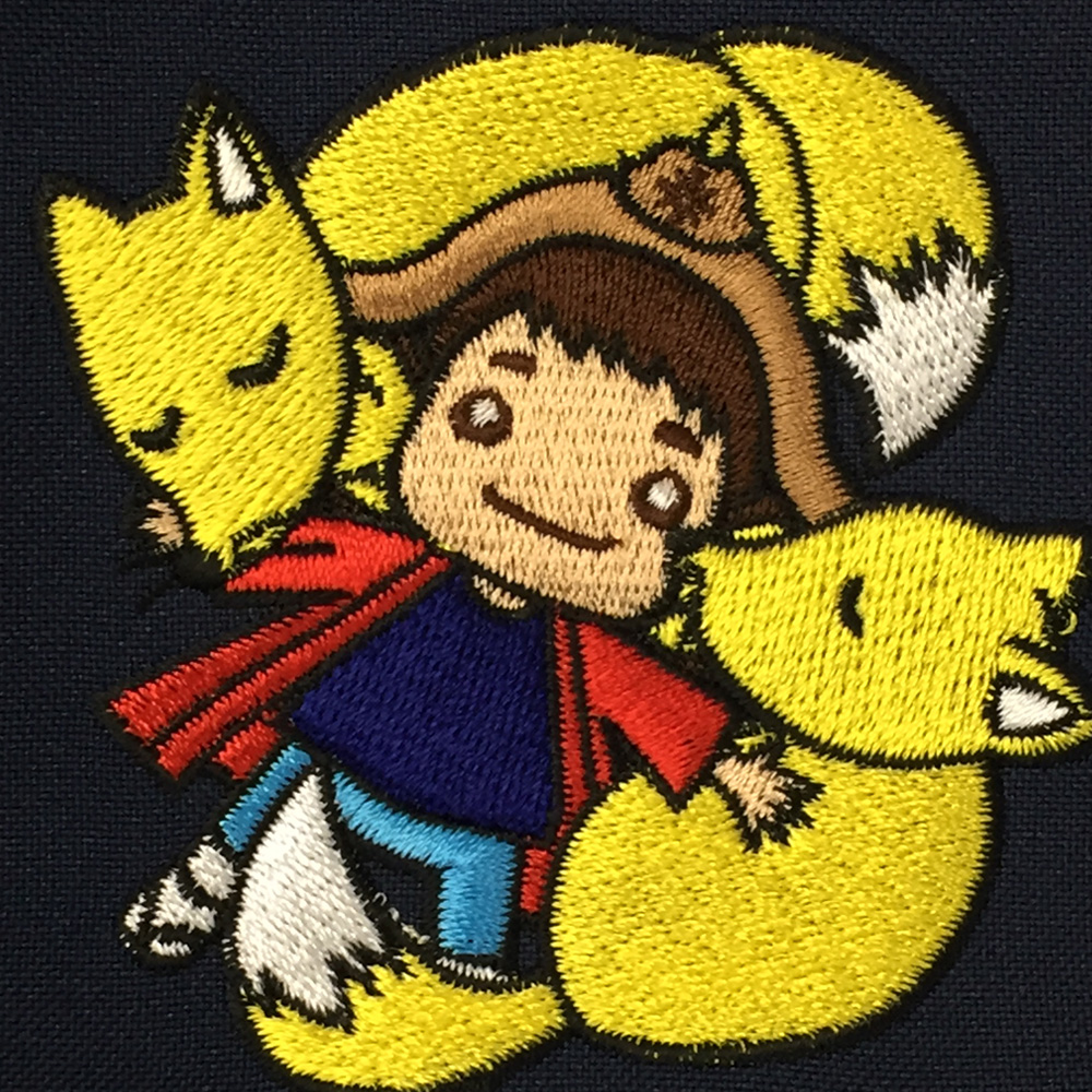 スライド4枚目の添付画像のデザインからキャラクターだけを抜き取り、細かい部分が刺繍で潰れないように簡素化や省略、カラーの設定を行い、綺麗に再現できるよう刺繍しました。