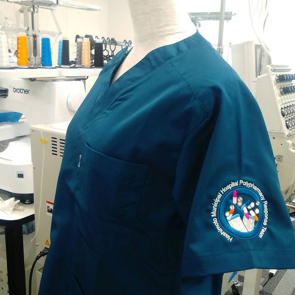 デザイン刺繍 橋本市民病院薬剤部様 Cランクカラフル円形(丸型)デザイン袖複雑タイプ 橋本市民病院薬剤部様スクラブロゴマーク刺繍デザインのご紹介です。このたびは製作のご依頼ありがとうございました。 このデザインについて 【刺繍加工のポイント】 オブジェクトのレイヤー(重なり)が多く、刺繍型の抜き合わせをしっかりしないと、綺麗に仕上がりませんので、その点に注意し刺繍型を作成しました。 試し打ちで何度か修正をしています。レイヤー部分はしっかり凹凸が表現でき、立体感を出せています。 刺繍位置 :左袖 刺繍サイズ:左右8cm 刺繍カラー:7色 ホワイト・シルバー・サックス・オレンジ・ライトピンク・ピンク・ロイヤルブルー ※polypharmacy responseという英語は今までメディカルウェアの刺繍をやって来て、正直初めて見た語彙でしたので、調べてみたところ多剤併用反応という意味でした。勉強になりました。 この記事をシェア