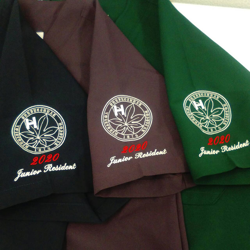 デザイン刺繍 県立広島病院2020年様 CランクDランク円形(丸型)デザイン心電図細かい文字背中袖 県立広島病院2020年様スクラブロゴマーク刺繍デザインのご紹介です。2019年に続き、製作のご依頼ありがとうございました。 このデザインについて 【刺繍加工のポイント】 背中のボルドーの月型オブジェクトは、かなり高密度で刺繍しております。 アウトラインの縁取りも入れているため、かなりの立体感となっております。 袖の書体は花文字を採用しており、再現できる限界の文字サイズとなっております。 刺繍位置 :背中/左袖 刺繍サイズ:背中 左右28㎝ / 左袖 左右7㎝ 刺繍カラー:背中 ホワイト・ボルドー / 左袖 ホワイト、有り文字刺繍のみレッド 使用スクラブ:MIZUNO MZ-0018スクラブ この記事をシェア