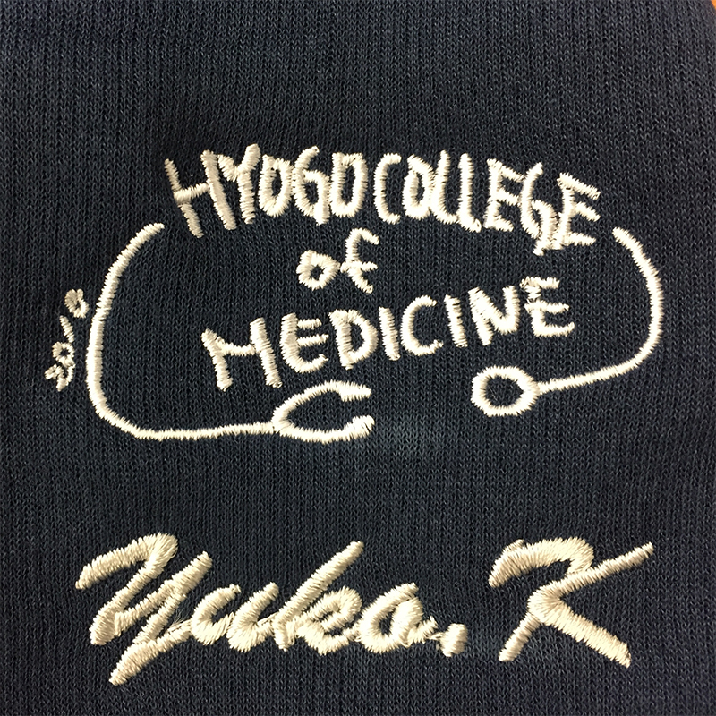 デザイン刺繍 兵庫医科大学2016年卒業生様 Bランクシンプル細かい文字聴診器袖 兵庫医科大学2016年卒業生様スクラブ刺繍デザインのご紹介です。 製作のご依頼ありがとうございました。 このデザインについて 【刺繍加工のポイント】 ニット素材と布帛素材の両方に刺繍しましたので、 素材の違いによる刺繍の出来上がりの違いを比較してください。 刺繍位置 :左袖 刺繍サイズ:左右6.5cm 刺繍カラー:ホワイト この記事をシェア