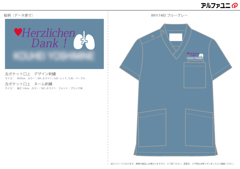 刺繍位置 :左ポケット口上デザイン刺繍/左ポケット口上ネーム刺繍