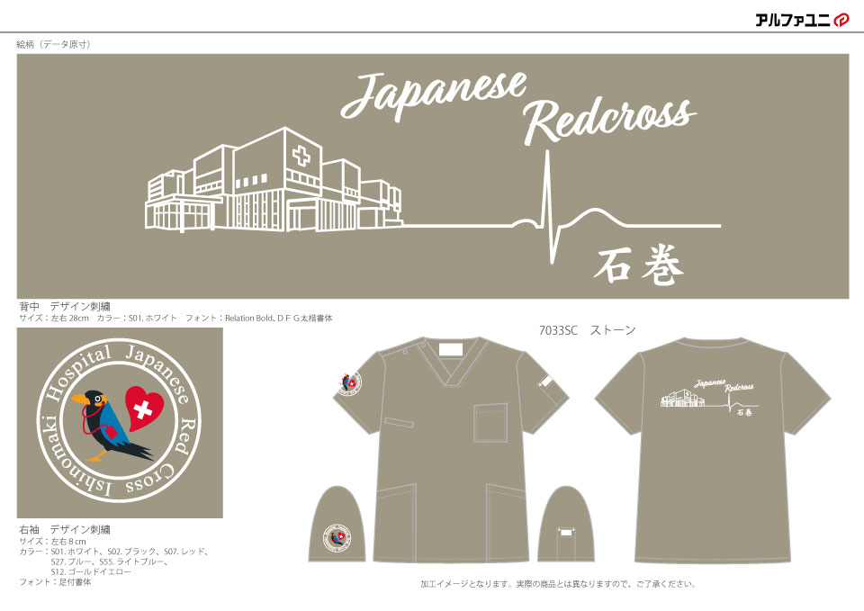 デザイン刺繍 石巻赤十字病院2023年研修医様 背中刺繍デザイン 7033SC 1色建物心電図背中複雑タイプ 石巻赤十字病院2023年研修医様スクラブ背中刺繍デザインのご紹介です。このたびは製作のご依頼ありがとうございました。 このデザインについて 【刺繍加工のポイント】 100%サテンステッチです。病院の外観をイラスト化したものを刺繍しましたが、希望のデザインにかなり近い形で、精緻に再現できました。 刺繍位置 :背中 刺繍サイズ:左右28cm 刺繍カラー:1色 ホワイト 使用スクラブ:Dickies 7033SC スクラブ この記事をシェア