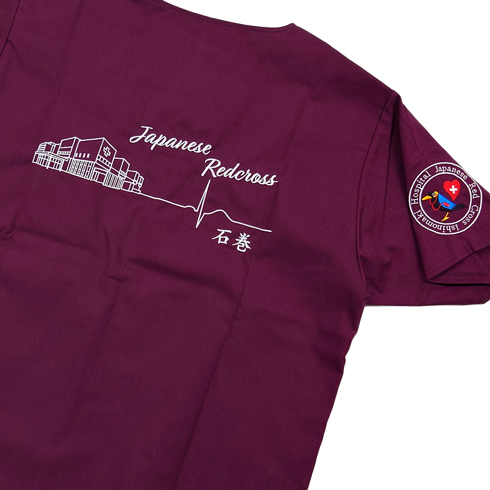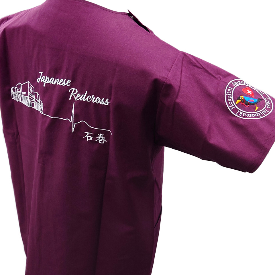 デザイン刺繍 石巻赤十字病院2023年研修医様 右袖刺繍デザイン カラフルハート円形(丸型)デザイン動物細かい文字袖複雑タイプ 石巻赤十字病院2023年研修医様スクラブ右袖刺繍デザインのご紹介です。このたびは製作のご依頼ありがとうございました。 このデザインについて 【刺繍加工のポイント】 ハートマークがくっきり綺麗に見えるよう、縁取りを入れました。 ハートの中の赤十字は、全体と同化させるようたたみステッチで統一しました。 刺繍位置 :右袖 刺繍サイズ:左右8cm 刺繍カラー:6色 ホワイト・ブラック・レッド・ブルー・ライトブルー・ゴールドイエロー 使用スクラブ:Dickies 7033SC スクラブ この記事をシェア