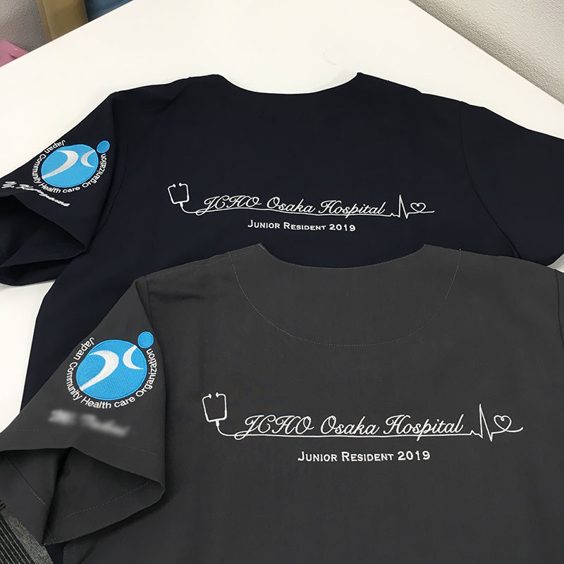 デザイン刺繍 JCHO大阪病院2019年レジデント様 CランクDランクハート円形(丸型)デザイン心電図聴診器背中袖 JCHO大阪病院2019年レジデント様スクラブロゴマーク刺繍デザインのご紹介です。このたび製作のご依頼ありがとうございました。 このデザインについて 【刺繍加工のポイント】 円形の刺繍、特に真円は難しいです。どうしても歪んでしまい、真ん丸にすることが大変です。 その中で、それなりに出来上がったと思います。 刺繍位置 :左袖/背中 刺繍サイズ:左袖左右8cm/背中左右28㎝ 刺繍カラー:左袖 2色ホワイト・サックス/背中 1色ホワイト 使用スクラブ:KAZEN133スクラブ この記事をシェア