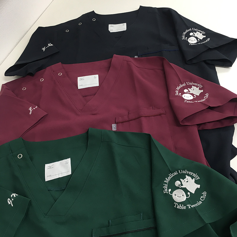 デザイン刺繍 自治医科大学卓球部様 Cランクかわいいキャラクター円形(丸型)デザイン袖 自治医科大学卓球部様スクラブロゴマーク刺繍デザインのご紹介です。このたびは製作のご依頼ありがとうございました。 このデザインについて 【刺繍加工のポイント】 中央のキャラクターの刺繍の目や口については抜きで対応しています。 通常オブジェクトの中の小さい点や線の抜きは難しいため、 生地と同じ糸で打ち込むのですが、今回は抜きで対応しました。 刺繍位置 :左袖 刺繍サイズ:天地8cm 刺繍カラー:1色 ライトグレー この記事をシェア