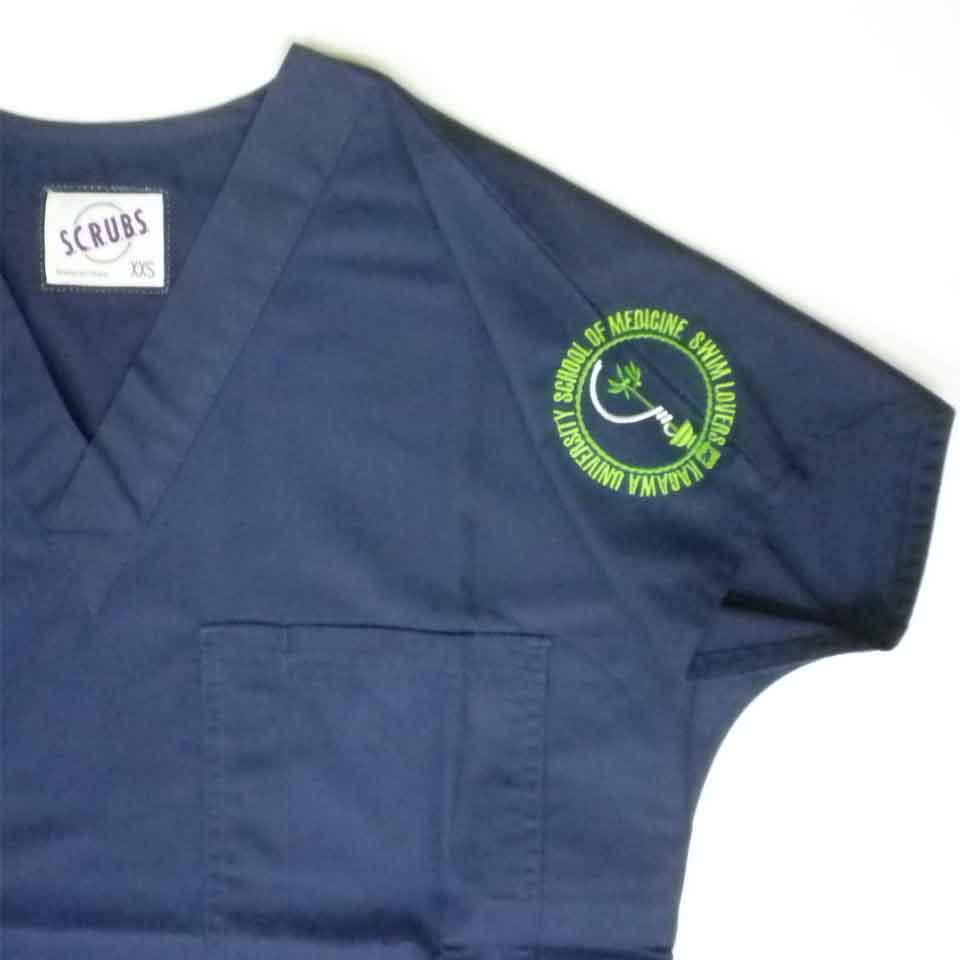 デザイン刺繍 香川大学医学部水泳部様 Dランク円形(丸型)デザイン袖 香川大学医学部水泳部様スクラブ刺繍デザインのご紹介です。 製作のご依頼ありがとうございました。 このデザインについて 【刺繍加工のポイント】 S.C.U.R.U.B.S. Z1004の袖にはセンターに縫い目が走っているので、その縫い目の上に刺繍をしました。 しっかりと引っ張って生地を枠をセットしたため、段差による刺繍への影響はありませんでした。 刺繍位置 :左袖 刺繍サイズ:天地7cm 刺繍カラー:4色 ホワイト、ライム、イエロー、ホットピンク この記事をシェア