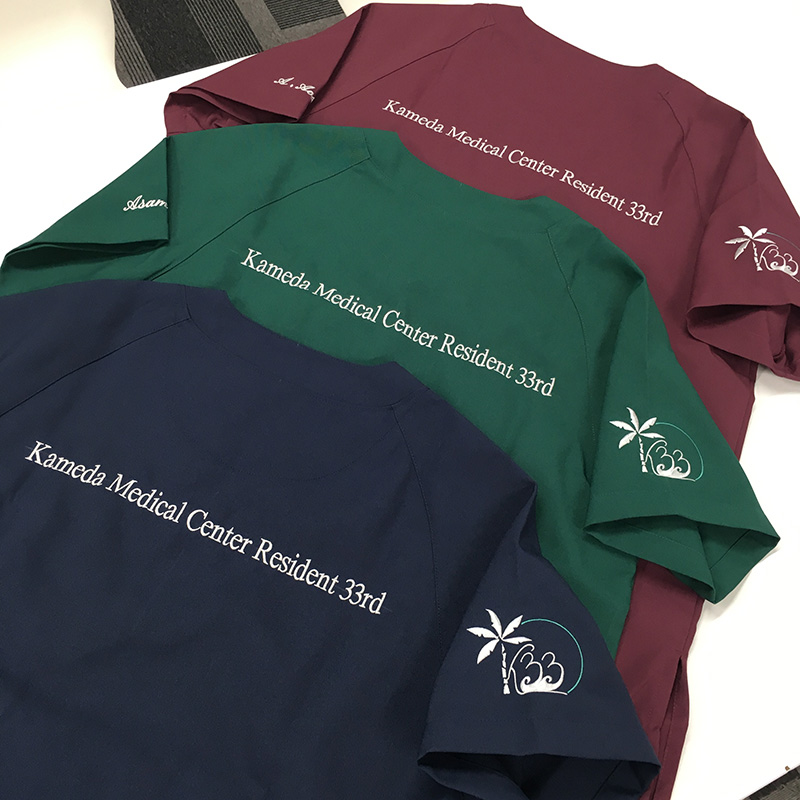 デザイン刺繍 亀田総合病院卒後研修センター33期生様 MZ-0021 Cランクかわいい袖風景 亀田総合病院卒後研修センター33期生様スクラブロゴマーク刺繍デザインのご紹介です。 製作のご依頼ありがとうございました。 このデザインについて 刺繍位置 :左袖・背中 刺繍サイズ:左袖左右7.5cm、背中左右28㎝ 刺繍カラー:左袖2色 ホワイト・エメラルドグリーン、背中 シルバー 袖のデザインは波を33の文字で(33期)で表現しています。 この記事をシェア