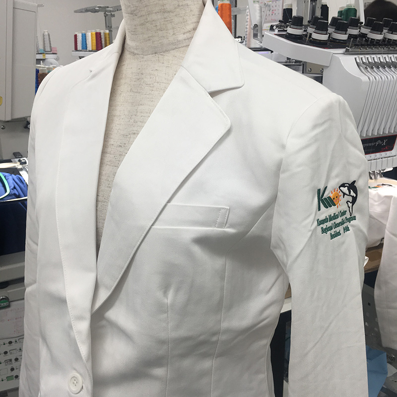 デザイン刺繍 亀田総合病院レジデント2020_8-9th様 Cランクドクターコート動物細かい文字袖複雑タイプ 亀田総合病院レジデント2020様ドクターコート(ジャケット)マーク刺繍デザインのご紹介です。製作のご依頼ありがとうございました。 このデザインについて 【刺繍加工のポイント】 Kマークとシャチはしっかり打ち込み本数を上げて立体感を出し、おひさまの部分は細い糸を使用し、顔の目や口までしっかり再現できました。 刺繍位置 :左袖 刺繍サイズ:左右7.1cm 刺繍カラー:7色 ダークグリーン、オレンジ、ゴールドイエロー、ライトブラウン、ピンク、ブラック、ホワイト 使用ドクターコート:BIANCA BY KAZEN KZN111 メンズブレザー、MZ-0130 ジャケット[女性] この記事をシェア