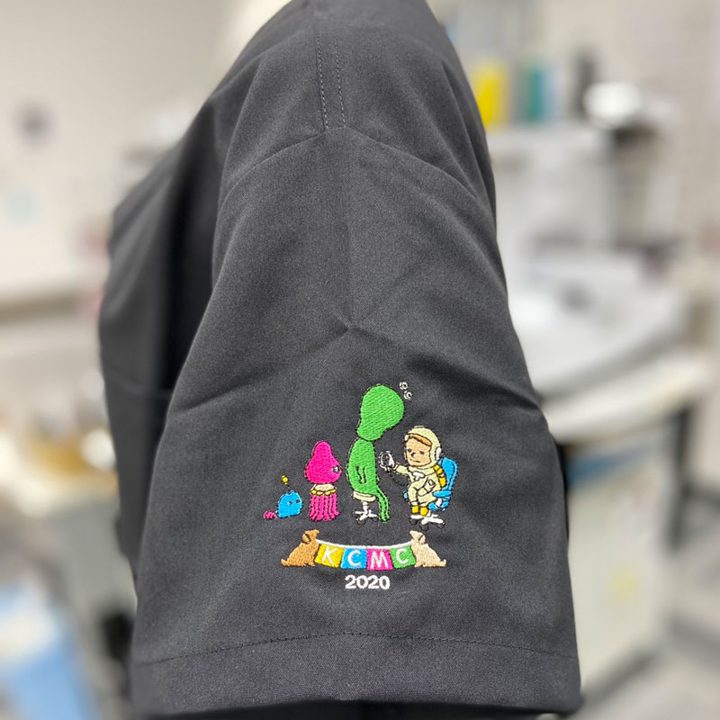 デザイン刺繍 神奈川県立こども医療センター様2020年 Cランクカラフルかわいいキャラクター動物袖複雑タイプ 神奈川県立こども医療センター様2020年新デザインスクラブ刺繍のご紹介です。 毎年ご注文をいただいておりますが、今年についても2デザインを採用し製作を致しました。ご依頼ありがとうございました。 このデザインについて 【刺繍加工のポイント】 かなり細かいデザインでしたので、アウトラインのブラックの罫線をステッチ表現にするか サテン打ちで縫い止めするか迷い、どちらのサンプルも作成した上で量産加工を行いました。 【デザイン1】 刺繍位置 :左袖 刺繍サイズ:左右7.3cm 刺繍カラー:10色(MAX)ホワイト、ブラック、ホットピンク、サンフラワー、サックス、ライム、ライトブラウン、ベージュ、フレッシュ、パステルイエロー 【デザイン2】 刺繍位置 :左袖 刺繍サイズ:左右8cm 刺繍カラー:10色(MAX)ホワイト、ブラック、ホットピンク、サンフラワー、サックス、ライム、ライトブラウン、ベージュ、クリーム、ダークグレー この記事をシェア