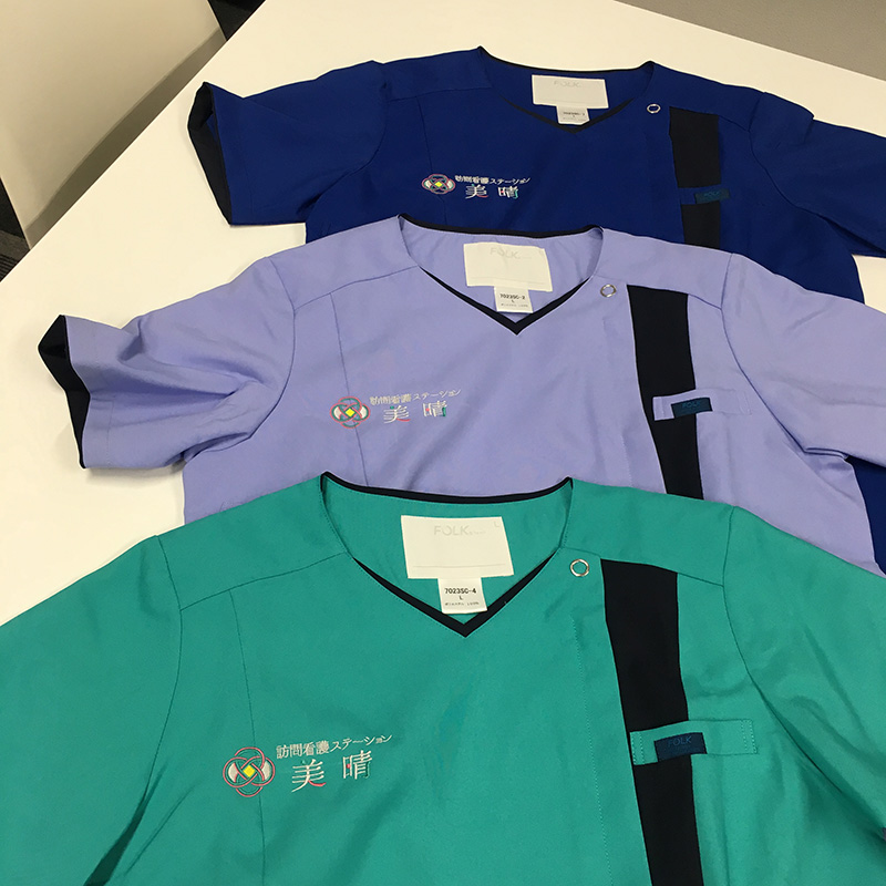 デザイン刺繍 訪問看護ステーション美晴様 カラフル胸 訪問看護ステーション美晴様ジップスクラブロゴマーク刺繍デザインのご紹介です。 このデザインについて 【刺繍加工のポイント】 「訪問看護」の文字が高さで7mm強しかないため、画数の多い漢字は再現が微妙ですが、お客様のご了承をいただき加工しました。 本来であれば漢字の場合、1cmはサイズを確保できることが理想です。 刺繍位置 :右胸 刺繍サイズ:左右10cm 刺繍カラー:4色 ライトグレー、ピンク、エメラルドグリーン、イエロー 使用スクラブ:FOLK 7023SC レディスジップスクラブ この記事をシェア