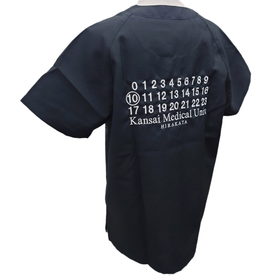 デザイン刺繍 関西医科大学様 背中刺繍デザイン 1色シンプル背中 関西医科大学様スクラブ背中刺繍デザインのご紹介です。このたびは製作のご依頼ありがとうございました。 このデザインについて 【刺繍加工のポイント】 お客様の最初のご要望デザインは、「HIRAKATA」の文字が一回り小さく、文字の線も今の半分程度でした。 しかし、刺繍で綺麗に再現する上で、文字を大きく、かつ太くする必要があったため、そうしていただけるようお願いしました。その結果、しっかりと見やすい仕上がりになりました。 また、こちらのデザインは一見フォント刺繍に見えますが、文字によってフォント刺繍の書体にないものをご希望であったため、デザイン刺繍として刺繍型を一から作成しました。 刺繍位置 :背中 刺繍サイズ:左右24cm 刺繍カラー:1色 ホワイト 使用スクラブ:MIZUNO MZ-0021 この記事をシェア