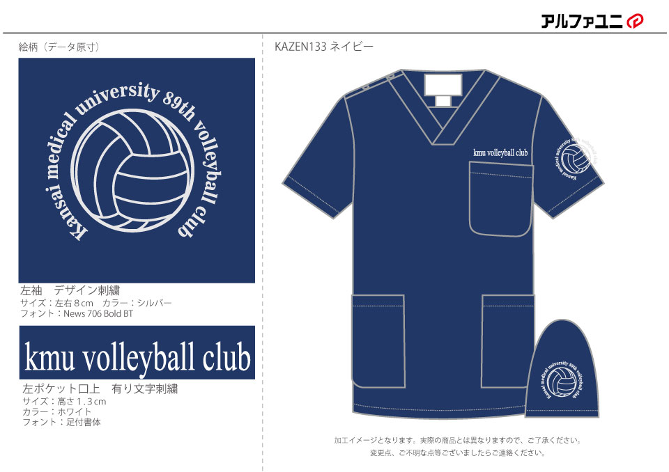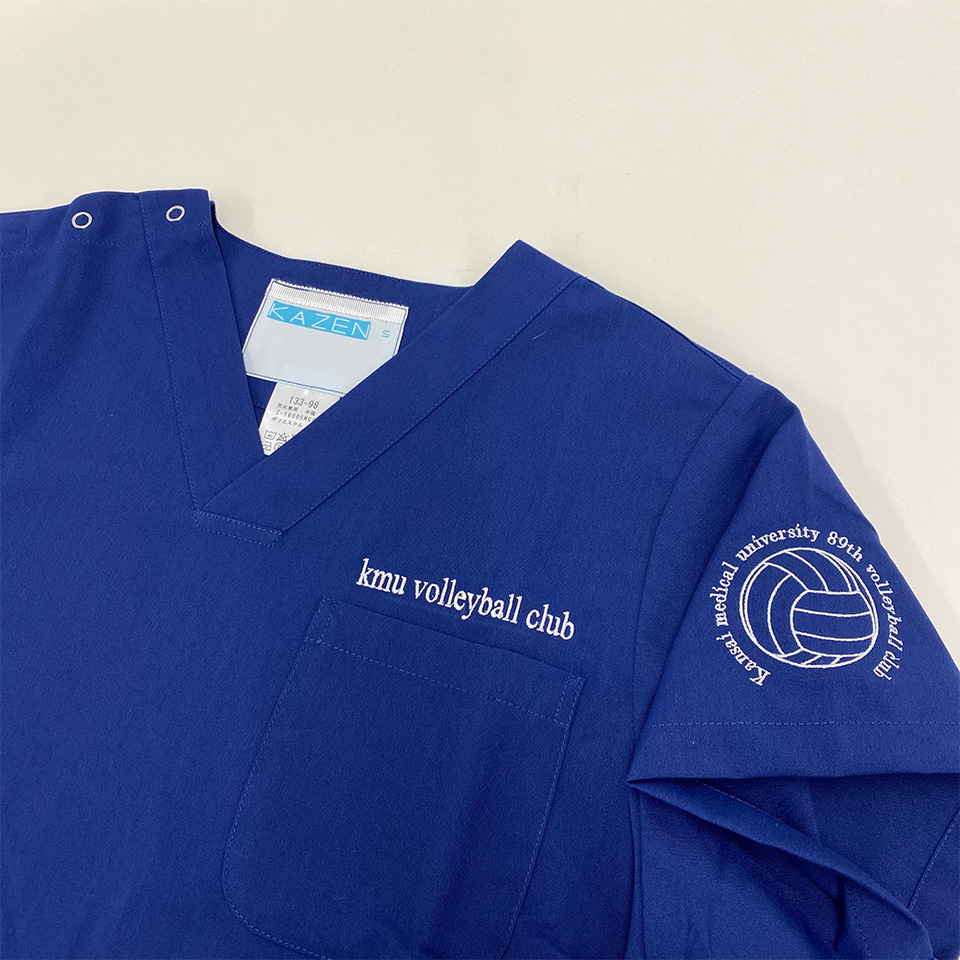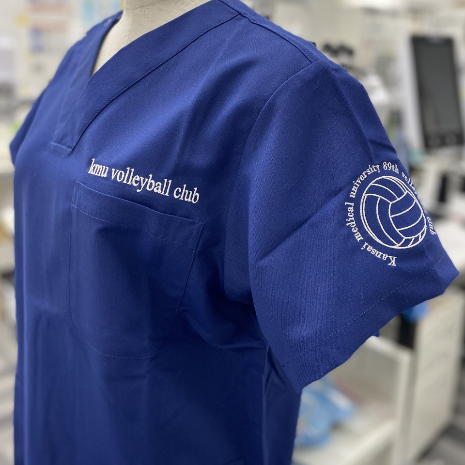 デザイン刺繍 関西医科大学バレーボール部様 1色Cランクスポーツ円形(丸型)デザイン細かい文字袖 関西医科大学バレーボール部様スクラブロゴマーク刺繍デザインのご紹介です。このたびは製作のご依頼ありがとうございました。 このデザインについて 【刺繍加工のポイント】 直径8cmは袖に刺繍の最大サイズです。 また、バレーボールのイラストを囲んでいる文字のサイズは小文字で4mm程度となりますので、こちらも刺繍で再現できる文字の最小サイズです。 また、左ポケット口上の有り文字刺繍サイズは左右10cmとなります。 一般的にスクラブのポケットの幅が10cm~11cm程度ですので、10cmですとポケットの幅に収まり、見栄えが良くなります。 刺繍位置 :左袖/左ポケット口上 刺繍サイズ:左右8cm/高さ1.3㎝ 刺繍カラー:左袖1色 シルバー/左ポケット口上1色 ホワイト 使用スクラブ:KAZEN 133スクラブ この記事をシェア