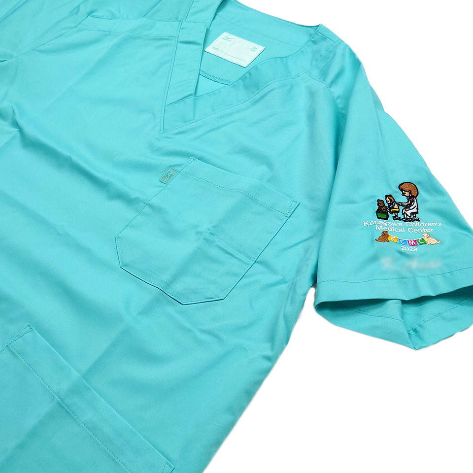デザイン刺繍 神奈川県立こども医療センター様 2023年左袖刺繍デザインA カラフルかわいい動物細かい文字袖複雑タイプ 神奈川県立こども医療センター様スクラブ2023年左袖刺繍デザインAのご紹介です。このたびは製作のご依頼ありがとうございました。 このデザインについて 【刺繍加工のポイント】 細かいデザインですが、イラストをクッキリ見せるために、アウトラインにブラックの罫線を付けました。 デザイン全体からすると太い線に見えますが、刺繍での最細0.7mm設定です。 ステッチでラインを表現することも可能ですが、オブジェクトの周りを囲む場合ずれてしまうことが多く、オブジェクトの中の糸がはみ出して綺麗に再現できなくなってしまいます。そのため、サテンステッチ0.7mmで押さえて囲みました。 刺繍位置 :左袖 刺繍サイズ:天地7.5cm 刺繍カラー:8色 ホワイト・ブラック・クリーム・ライトブラウン・サンフラワー・サックス・ホットピンク・ライム 使用スクラブ:MIZUNO MZ-0120 ストレッチスクラブ この記事をシェア