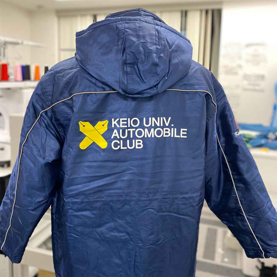 刺繍ワッペン 慶應義塾大学自動車部様 AランクCランク校章細かい文字胸複雑タイプ 慶應義塾大学自動車部様オリジナルベンチコートロゴマーク刺繍デザインのご紹介です。 このたびは製作のご依頼ありがとうございました。 【お客様からのコメント】 注文の品物が届きました。 素晴らしいクォリティで部員のみんな大喜びです。 素敵なチームウェアを作っていただきありがとうございます。 このデザインについて 【刺繍加工のポイント】 左胸上段の慶應義塾大学エンブレムはネイビーのワッペン生地を使用し、センターのレッドの部分とイエローのペンマークを刺繍しました。 左胸下段の四角型刺繍ワッペンは、下段の文字数が多く、何とか希望のサイズに収めるために、文字間をぎりぎりまで詰めて、何とかきれいに文字が再現できました。 また、左胸上下段のワッペンサイズの左右幅を合わせて、全体のバランスを取りました。 刺繍位置 :左胸 刺繍サイズ:左胸上段/天地8cm、左胸下段/左右8㎝ 刺繍カラー: 左胸上段 生地色 ネイビー、刺繍糸3色 レッド、イエロー、ブラック 左胸下段 生地色 ホワイト、刺繍糸3色 ホワイト、ブラック、レッド その他加工:背中 2色シルクプリント、右袖 CAM転写プリント・ネーム刺繍 使用ベンチコート:31500ベンチコートネイビー この記事をシェア