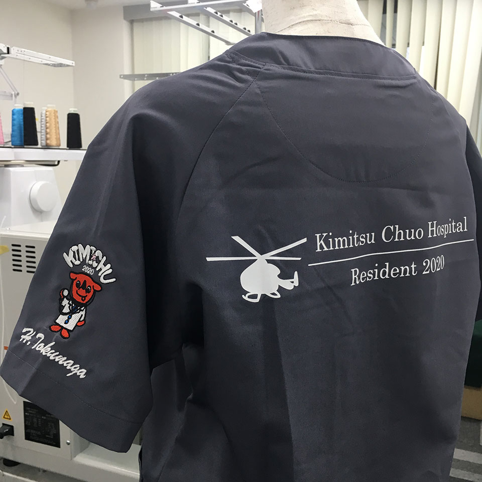 デザイン刺繍 君津中央病院2020年様 Cランクかわいいキャラクター細かい文字聴診器花 君津中央病院2020年様スクラブロゴマーク刺繍デザインのご紹介です。 ドクターチーバくんのデザインをオリジナルにアレンジした刺繍デザインです。 このたびは製作のご依頼ありがとうございました。 このデザインについて 【刺繍加工のポイント】 「KIMICHU」の文字はかなり糸密度を上げていますので、立体感があり、存在感が出ています。 「KIMICHU」の文字の間に桜のイラストが入っていますが、そこはライトピンクでアクセントとなっています。 また、「2020」の文字は限られたスペースに何とか入れ込みましたので、文字サイズとしては限界の最小となっています。 刺繍位置 :左袖 刺繍サイズ:天地7.3cm 刺繍カラー:5色 ホワイト、ブラック、ブルー、レッド、ライトピンク その他加工:背中1色シルクプリント 使用スクラブ:MIZUNO MZ-0120ストレッチスクラブ ※スクラブの生地が高密度で織られているため、刺繍をしたときに細密なデザインが綺麗に再現できますので、細かいデザイン刺繍にはオススメのスクラブです。 この記事をシェア