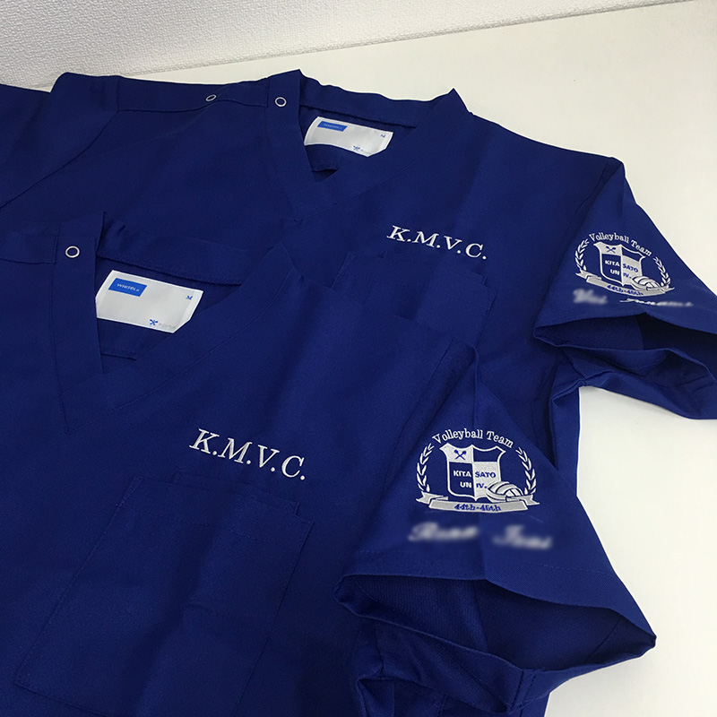 デザイン刺繍 北里大学医学部バレーボール部44-45th様 月桂樹Dランクスポーツ校章袖複雑タイプ 北里大学医学部バレーボール部44-45th部様スクラブロゴ刺繍デザインのご紹介です。 製作のご依頼ありがとうございました。 このデザインについて 刺繍位置 :左袖 刺繍サイズ:左右7㎝ 刺繍カラー:2色 シルバー、ロイヤルブルー(文字) その他加工:左ポケット口上 有り文字刺繍 この記事をシェア