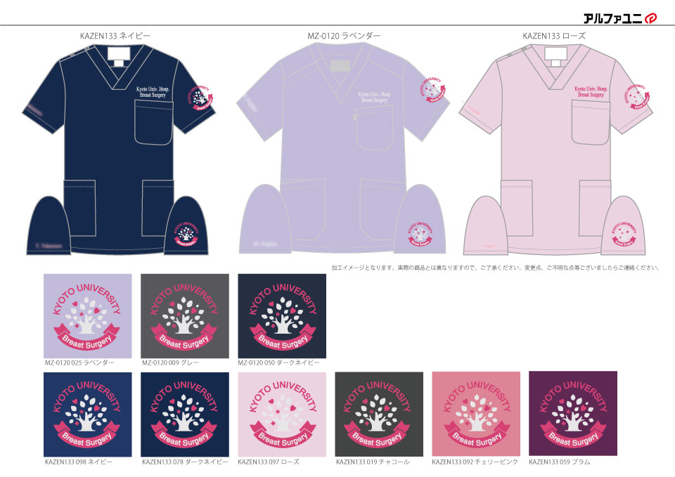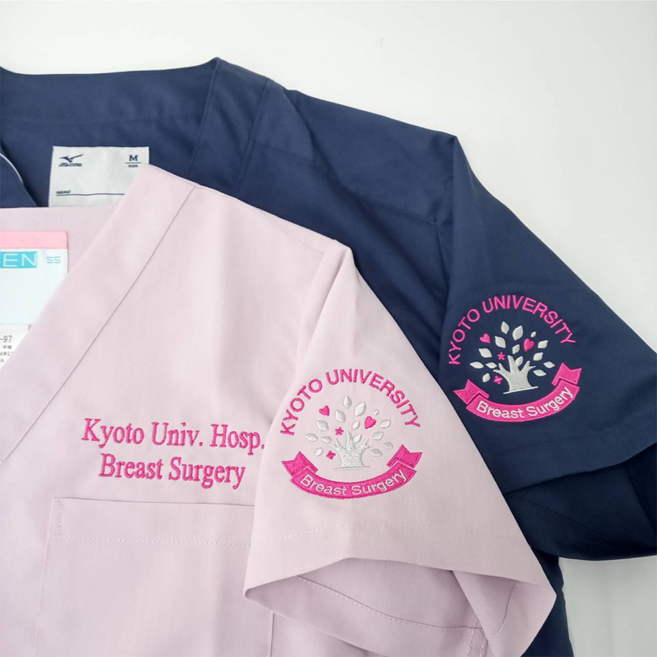 デザイン刺繍 京都大学医学部付属病院乳腺外科様 Cランクかわいいハート円形(丸型)デザイン花袖 京都大学医学部付属病院乳腺外科様スクラブロゴマーク刺繍デザインのご紹介です。このたびは製作のご依頼ありがとうございました。 このデザインについて 【刺繍加工のポイント】 幅が5mm程度しかないので、木の周りのハートマークの形が若干歪んでしまっていますが、 限界ということでご理解いただければと思います。 刺繍位置 :左袖/右袖/左胸 刺繍サイズ:左右7.5cm/高さ1.3㎝/高さ1.3㎝ 刺繍カラー:2色 シルバー・ホットピンク/2色の中から1色 シルバー・ホットピンク/2色の中から1色 シルバー・ホットピンク 使用スクラブ:MIZUNO MZ-0120スクラブ、KAZEN 133スクラブ この記事をシェア