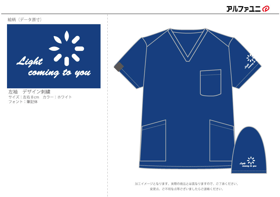 デザイン刺繍 ライト訪問看護ステーション様 Cランク袖 ライト訪問看護ステーション様スクラブロゴマーク刺繍デザインのご紹介です。このたびは製作のご依頼ありがとうございました。 このデザインについて 刺繍位置 :左袖 刺繍サイズ:左右8cm 刺繍カラー:ホワイト 使用スクラブ:FOLK 7000SCスクラブ この記事をシェア