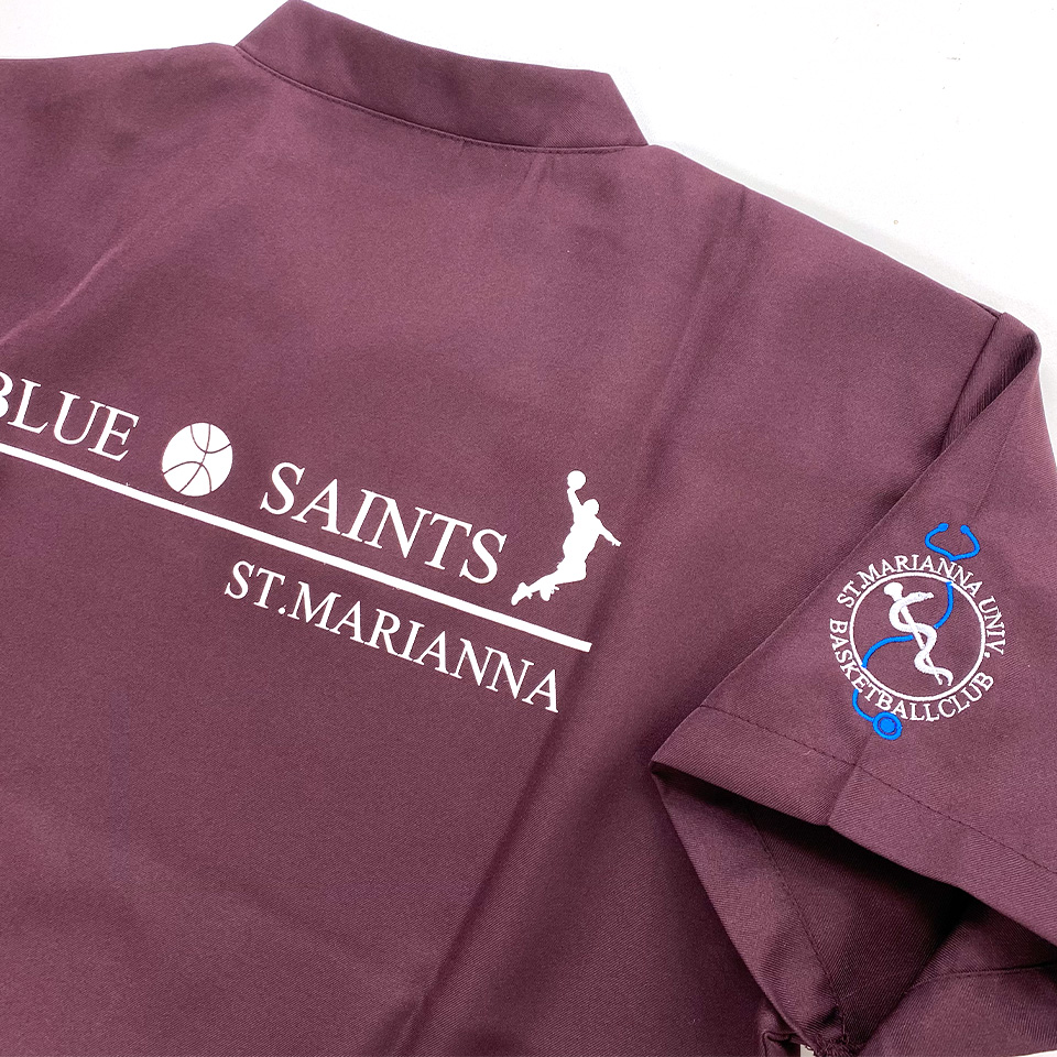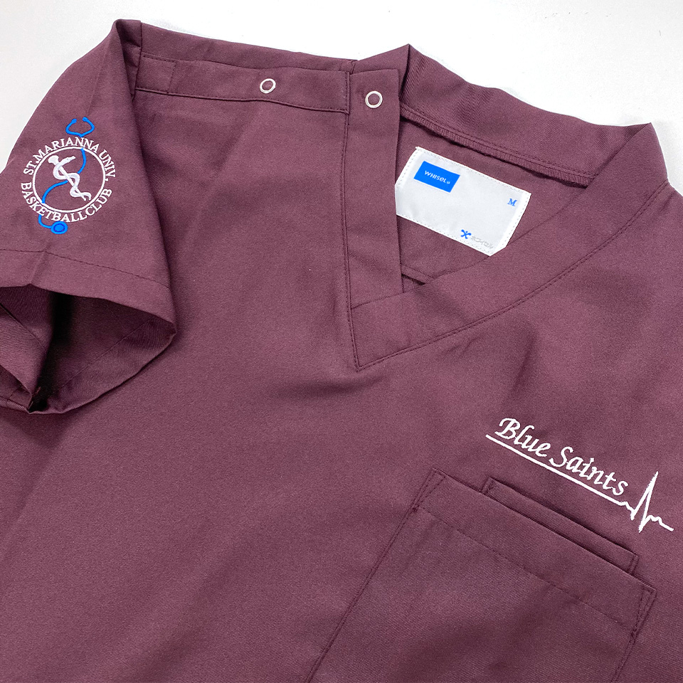 デザイン刺繍 聖マリアンナ医科大学バスケットボール部様 右袖刺繍デザイン 動物袖 聖マリアンナ医科大学バスケットボール部様スクラブ右袖刺繍デザインのご紹介です。このたびは製作のご依頼ありがとうございました。 このデザインについて 【刺繍加工のポイント】 細い線で表現されているデザインということで、すべてサテンステッチで刺繍をしました。 蛇の目については小さすぎましたので、潰れてしまっておりますが、目があることは何とか表現ができました。 刺繍位置 :右袖 刺繍サイズ:天地7.5cm 刺繍カラー:3色 ホワイト・ライトグレー・ブルー 使用スクラブ:WHISeL WH11485 男女兼用スクラブ この記事をシェア