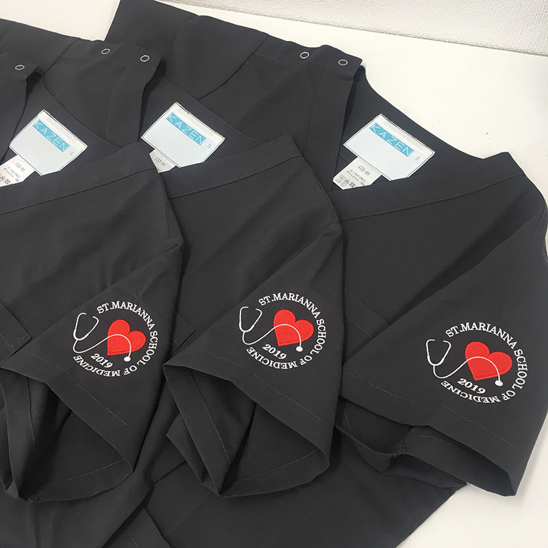 デザイン刺繍 聖マリアンナ医科大学2019年度卒業生様 Cランクかわいいハート円形(丸型)デザイン卒業記念聴診器袖 聖マリアンナ医科大学2019年度卒業記念スクラブロゴマーク刺繍デザインのご紹介です。 このデザインについて 刺繍位置 :左袖 刺繍サイズ:左右8cm 刺繍カラー:2色 ホワイト・レッド この記事をシェア