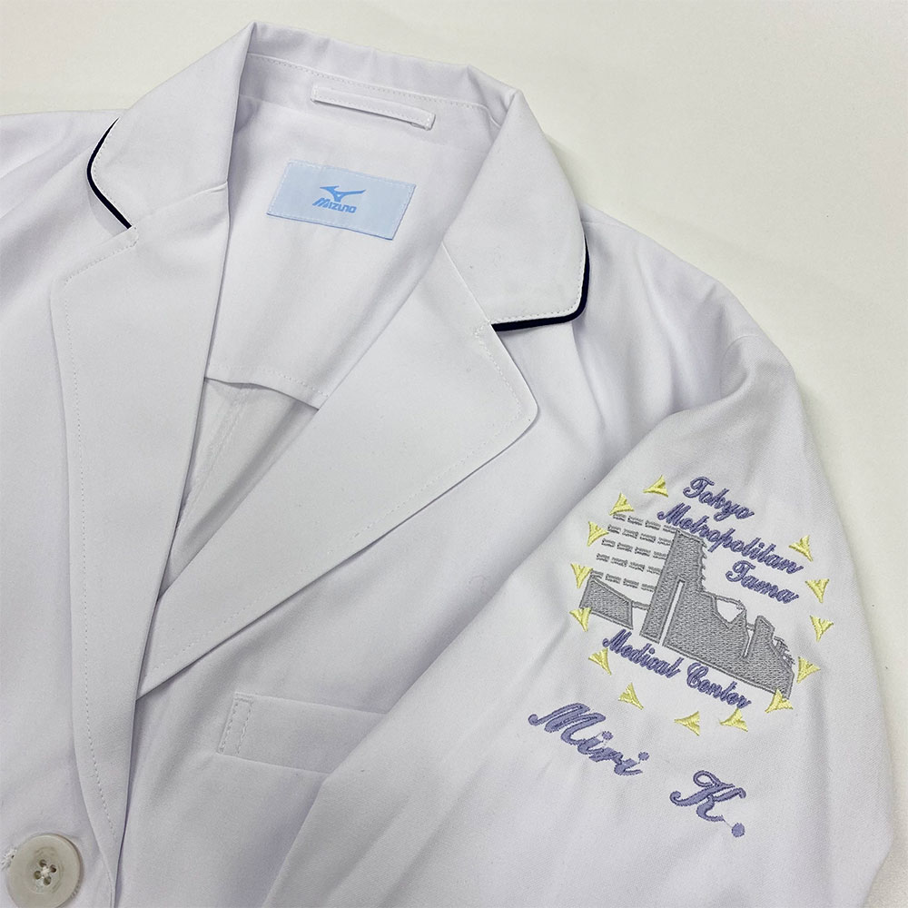 デザイン刺繍 東京都立 多摩総合医療センター2021様 MZ-0018 Cランク円形(丸型)デザイン建物細かい文字袖複雑タイプ 東京都立 多摩総合医療センター2021様スクラブ・ドクターコートロゴマーク刺繍デザインのご紹介です。このたびは製作のご依頼ありがとうございました。 このデザインについて 【刺繍加工のポイント】 袖の刺繍は病棟のイラストを簡素化して入れました。輪郭をくっきりと立体的に見せるためにアウトランに縁取りをサテン打ちで入れています。中はかなり細かいたたみ打ちです。 刺繍カラーは、パステルカラーとグレー系2色を採用しているため、個性的で落ち着いた仕上がりになっています。 また、背中の有り文字刺繍サイズは左右20cm、文字サイズ1.5cmですが、3段にしたため、思ったよりもボリュームが出て存在感が出ています。文字サイズを大きくされたいというご要望をいただくのですが、病院名は文字数がどうしても多くなり、1段あたりの文字が小さくなってしまいますので、このように3段に改行して刺繍することも1つの選択肢です。 また、文字サイズは2~2.5cmでもそれなりインパクトが出せます。実際にこちらは1.5cmですが、それなりに見栄えがすると製作側としては思っています。 刺繍位置 :背中/左袖 刺繍サイズ:背中/左右20cm(文字サイズ1.5cm)、袖/左右8cm 刺繍カラー:背中/1色 S32.ラベンダーグレー 左袖/3色 S04.ライトグレー・S15.パステルイエロー・S32.ラベンダーグレー 使用スクラブ:MZ-0018 スクラブ 使用ドクターコート:MZ-0108/0107 この記事をシェア