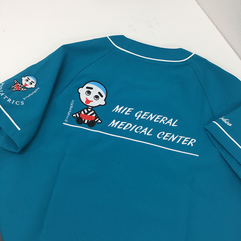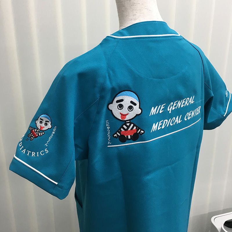 デザイン刺繍 三重県立総合医療センター小児科様 DランクHランクかわいいキャラクター背中袖複雑タイプ 三重県立総合医療センター小児科様スクラブロゴマーク刺繍デザインのご紹介です。製作のご依頼ありがとうございました。 こにゅうどうくんの刺繍をさせていただきます。 このデザインについて 刺繍位置 :左袖・背中 刺繍サイズ:左袖天地7.8cm・背中左右28㎝ 刺繍カラー:4色 ブラック、ホワイト、レッド、サックス この記事をシェア