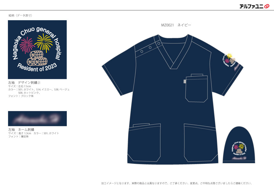 長岡中央綜合病院2023年研修医様スクラブ左袖刺繍デザインのご紹介です。