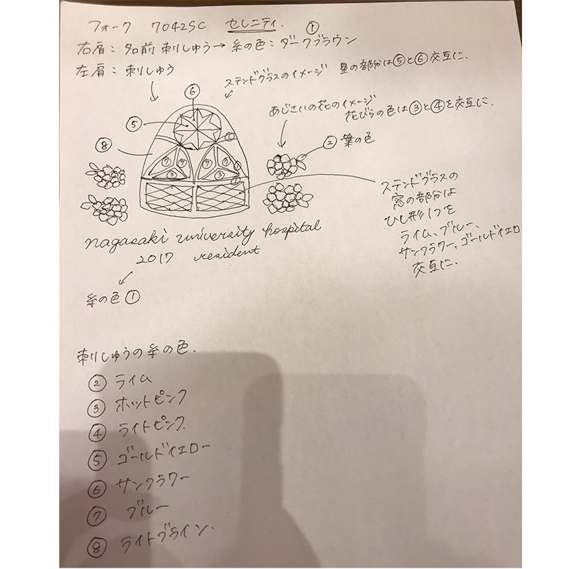 デザイン刺繍 長崎大学医学部附属病院研修医様 Dランクカラフル細かい文字袖複雑タイプ 長崎大学医学部附属病院研修医様スクラブロゴマーク刺繍デザインのご紹介です。 製作のご依頼ありがとうございました。 このデザインについて 【刺繍加工のポイント】 ご希望の色数が当初8色でしたが、 同じ糸カラーでも細い糸と太い糸を使用すると、 機械で使用できる色数10色に収まらないため、 糸数を絞る必要がありました。 刺繍位置 :左袖 刺繍サイズ:左右7.5cm 刺繍カラー:7色 ダークブラウン(PY1855) ライトブラウン(PY1166) ラベンダー(PY1222) ブルー(PY1509) サンフラワー(PY1105) ゴールドイエロー(PY1112) ライム(PY1058) この記事をシェア