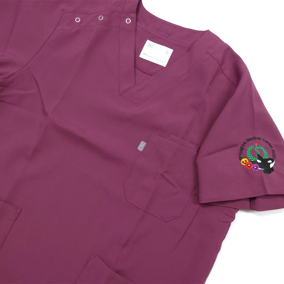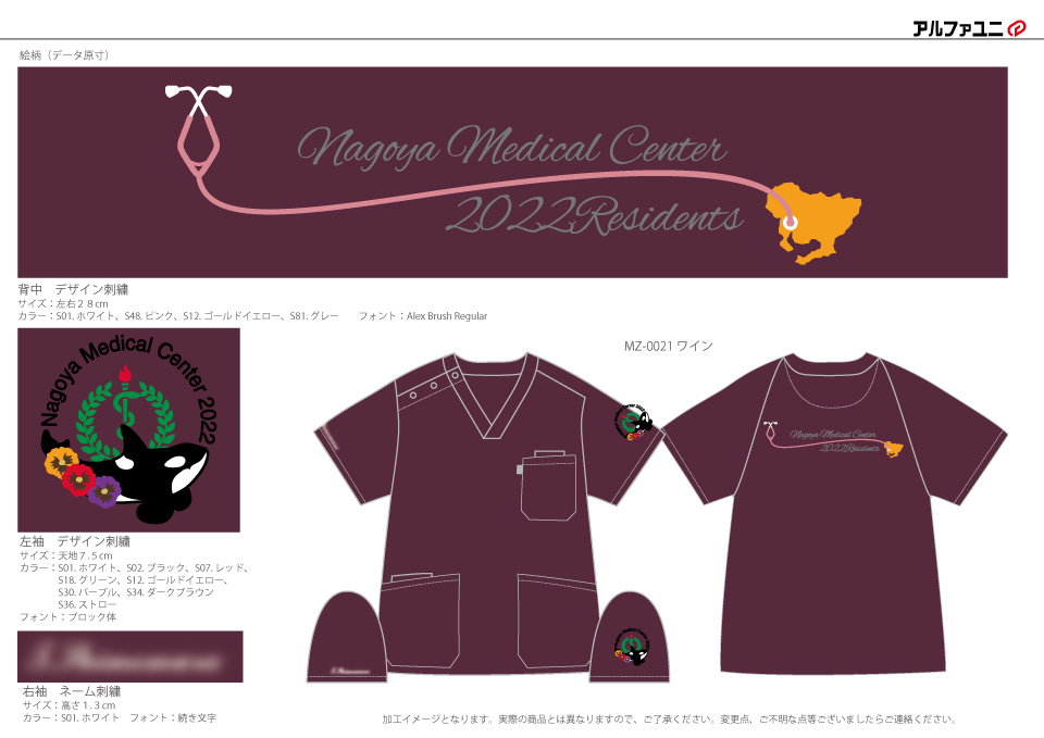 デザイン刺繍 名古屋医療センター2022年研修医様 MZ-0021 月桂樹Cランク円形(丸型)デザイン刺繍動画あり動物地図聴診器背中花袖 名古屋医療センター2022年研修医様スクラブロゴマーク刺繍デザインのご紹介です。このたびは製作のご依頼ありがとうございました。 このデザインについて 【刺繍加工のポイント】 シャチのデザイン刺繍について 黒い部分はたたみ打ちで、白い部分はサテン打ちと打ち方を変えています。 それによってアクセントが出来てふっくらした仕上がりになっています。 お花の刺繍もたたみ打ちですが、かなり細かく打ち込んでいます。 針数としては12000針近くで通常のCランクより若干単価が高くなりました。 刺繍位置 :左袖デザイン刺繍/背中デザイン刺繍/右袖ネーム刺繍 刺繍サイズ:天地7.5cm/左右28cm/高さ1.3cm 刺繍カラー:8色 ホワイト・ブラック・レッド・グリーン・ゴールドイエロー・パープル・ダークブラウン・ストロー/4色 ホワイト・ピンク・ゴールドイエロー・グレー/1色 ホワイト この記事をシェア