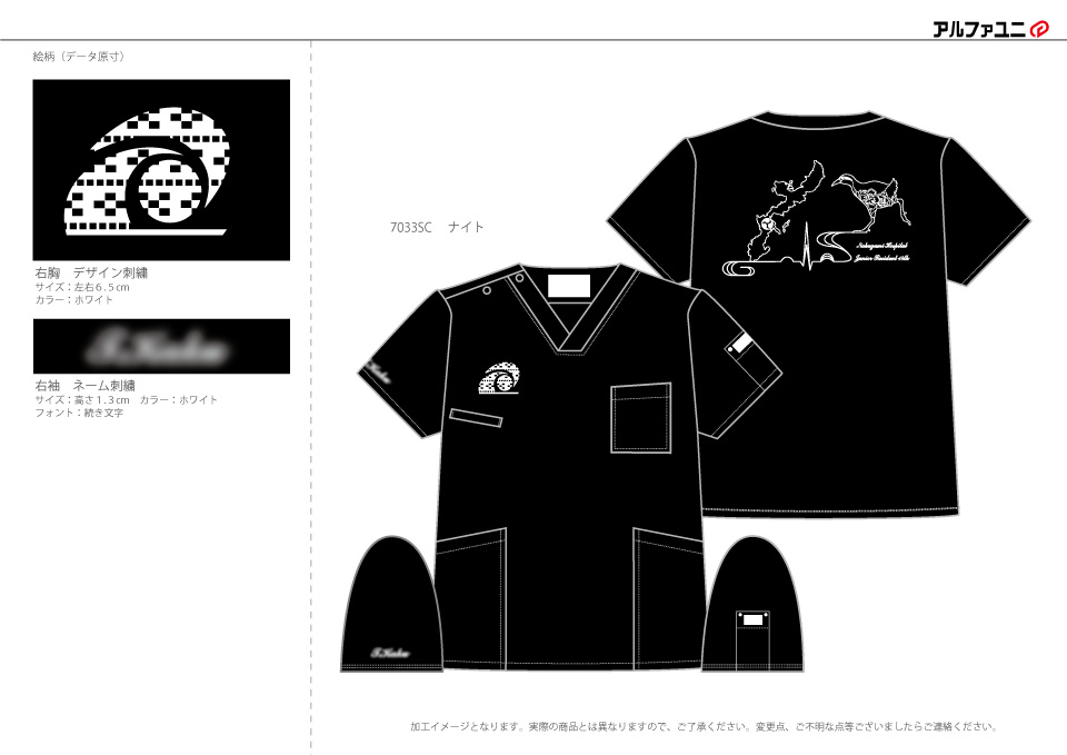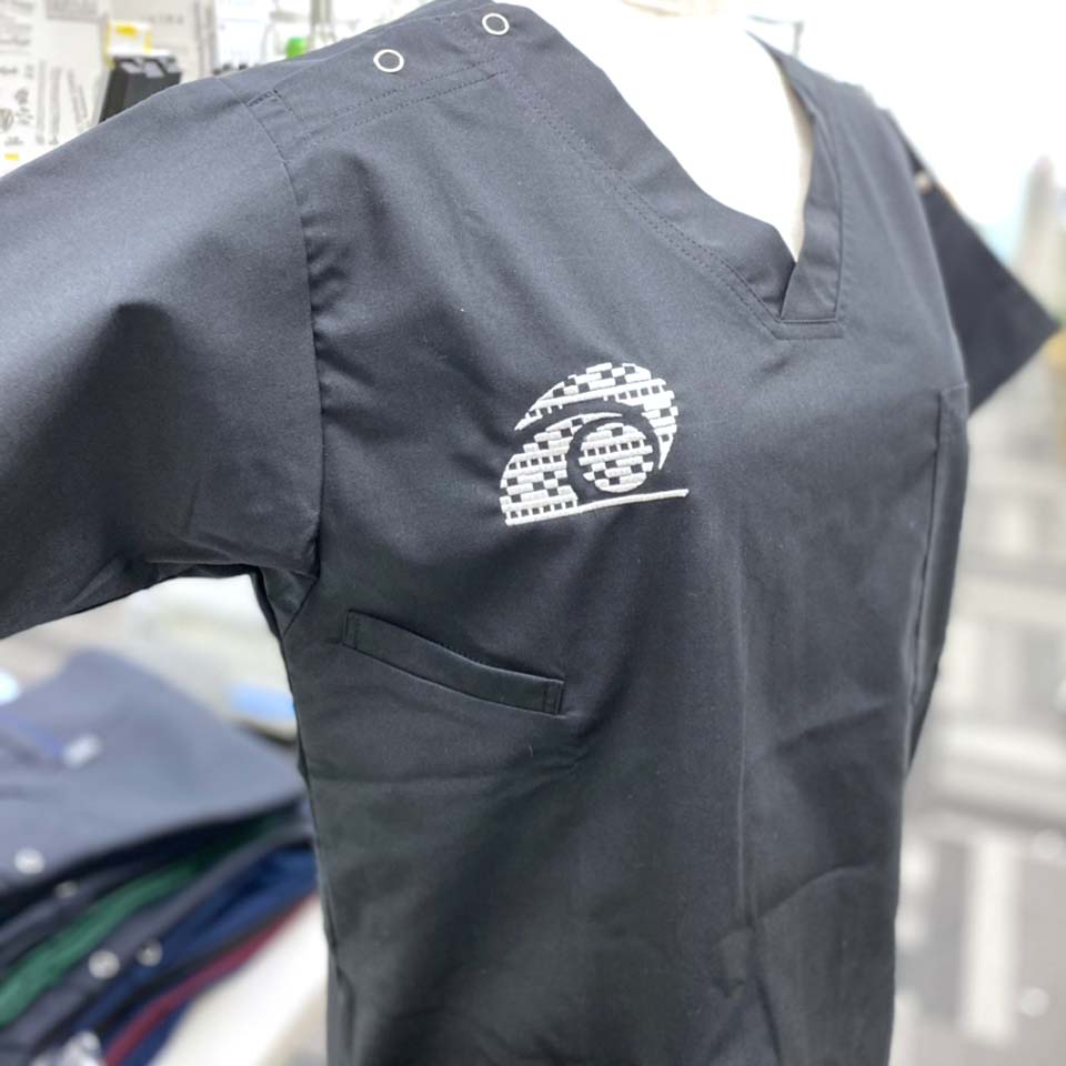 デザイン刺繍 中頭病院様 7033SC 1色Bランクロゴマーク胸複雑タイプ 中頭病院様スクラブロゴマーク刺繍デザインのご紹介です。このたびは製作のご依頼ありがとうございました。 このデザインについて 【刺繍加工のポイント】 右胸のデザイン刺繍は、石垣島のミンサー織をイメージしたデザインです。 すべてサテン打ちで加工しており、細かい抜きがありますが、綺麗に抜けています。 ※抜きが細かすぎる場合は、生地と同色の糸打ち込むことが多いのですが、こちらについては抜きで対応しました。 刺繍位置 :右胸デザイン刺繍/右袖ネーム刺繍 刺繍サイズ:左右6.5cm/高さ1.3cm 刺繍カラー:1色 ホワイト/1色 ホワイト 使用スクラブ:ディッキーズ(Dickies)7033SC スクラブ その他加工:背中シルクプリント この記事をシェア