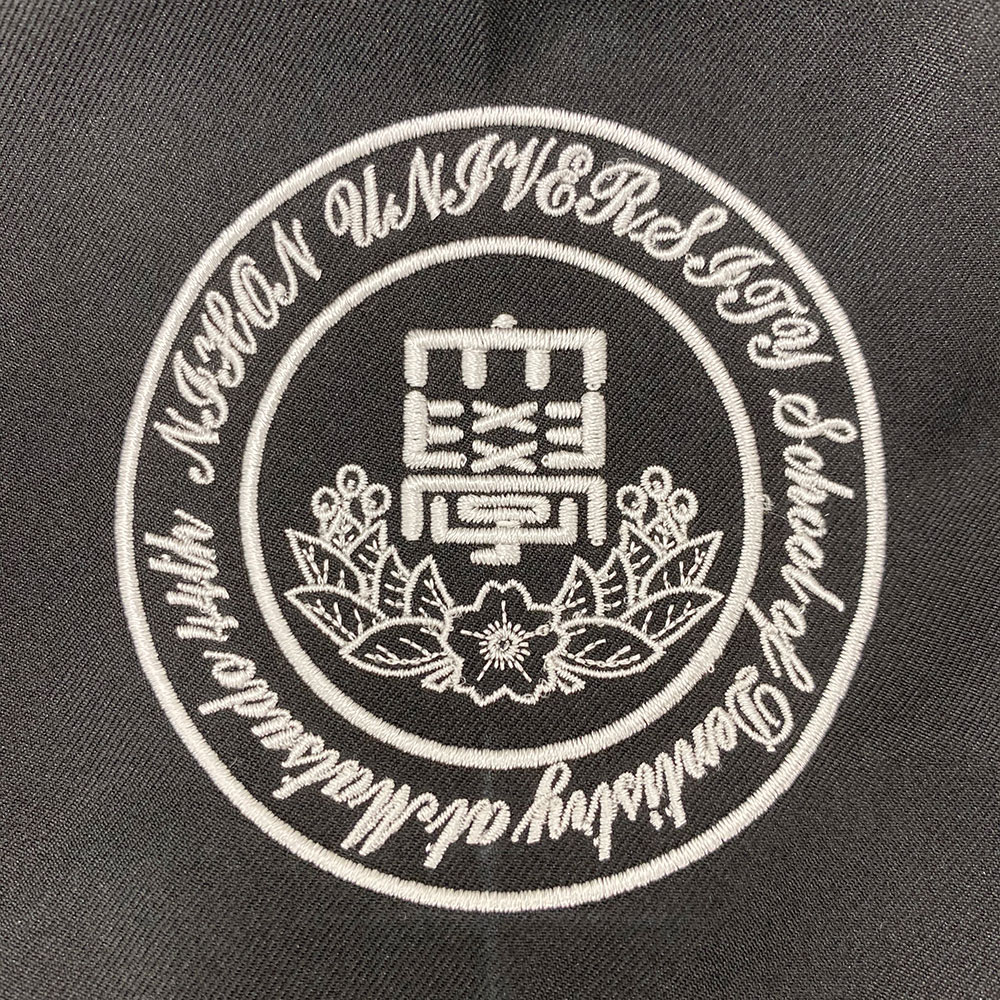 デザイン刺繍 日本大学松戸歯学部様 Cランク円形(丸型)デザイン卒業記念校章細かい文字袖複雑タイプ 日本大学松戸歯学部様スクラブロゴマーク刺繍デザインのご紹介です。このたびは製作のご依頼ありがとうございました。 このデザインについて 【刺繍加工のポイント】 細かい表現があり、針を横に振って太さを出すことが困難なポイントがあったため、事前に以下の注意をお知らせしご了承いただいた上で刺繍加工を行いました。 ※桜や葉の部分はステッチ(- – – – -)での表現となります。 桜の中にある点は糸の太さよりも小さくなりますので、 表現することができません。 刺繍位置 :左袖 刺繍サイズ:左右8cm 刺繍カラー:1色 シルバー 使用スクラブ:WHISEL WH11485スクラブ ※コスパ最高のバリュースクラブ この記事をシェア