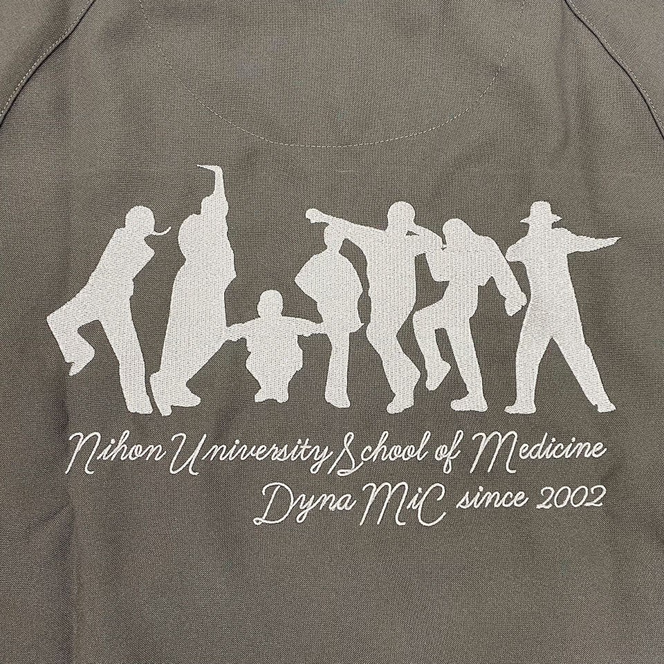 日本大学医学部ダンス部DYNAMIC様スクラブ、背中のロゴマーク刺繍デザインのご紹介です。