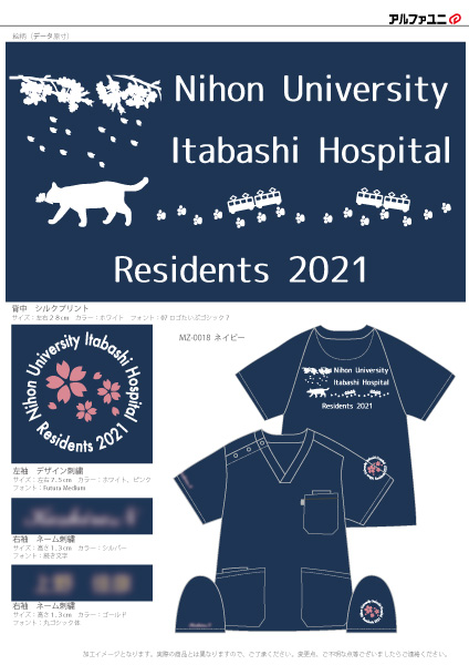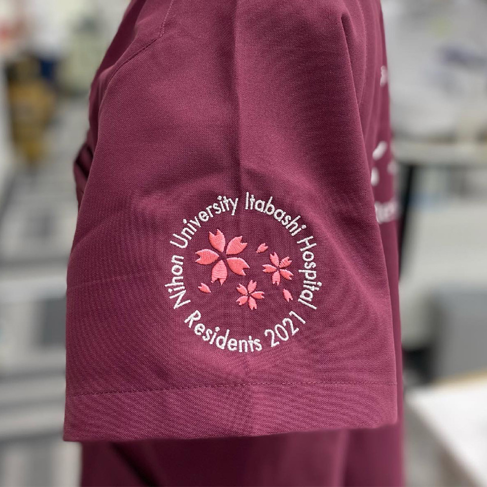 デザイン刺繍 日本大学板橋病院研修医2021様 MZ-0018 Cランクかわいい円形(丸型)デザイン花袖 日本大学板橋病院研修医2021様スクラブロゴマーク刺繍デザインのご紹介です。このたびは製作のご依頼ありがとうございました。 このデザインについて 【刺繍加工のポイント】 袖の刺繍デザインの桜の花びらについて 小さいものでも形通りに1枚1枚きっちり再現できました。 こちらはサテン打ちとなっています。 刺繍位置 :左袖 デザイン刺繍/右袖 ネーム刺繍 刺繍サイズ:左袖左右7.5cm/右袖高さ1.3cm 刺繍カラー:左袖 2色 ホワイト、ピンク/右袖 各1色 ライラック、シルバー、ライトグレー、ホワイト、ブラック、金糸、ゴールド 使用スクラブ:MIZUNO MZ-0018スクラブ この記事をシェア