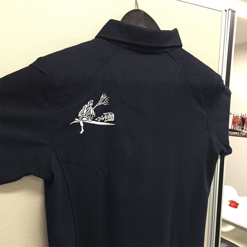 刺繍位置を、一般的な、左胸や左袖ではなく、後ろ左肩部にしました。