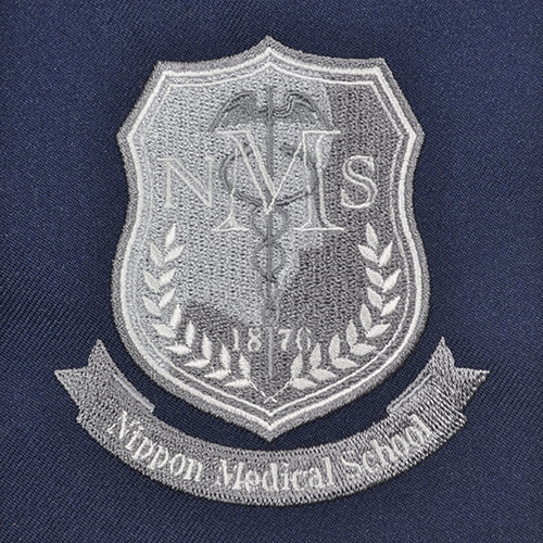 デザインすべてを直刺繍で打ち込みましたので、かなりの針数となっております。 ネット上で日本医科大学様のエンブレムの画像が多く上がっている中で、たたみ打ちの細かさと目の揃い方、リボン部分の立体感の違いをご確認下さい。面積が広い場合、時間を短縮するために太い糸を使用することが多くなっておりますが、この刺繍については細い糸で細かく打ち込んでおります。それによって仕上がりのレベルがかなり高くなっていることがお分かりいただけると思います。
