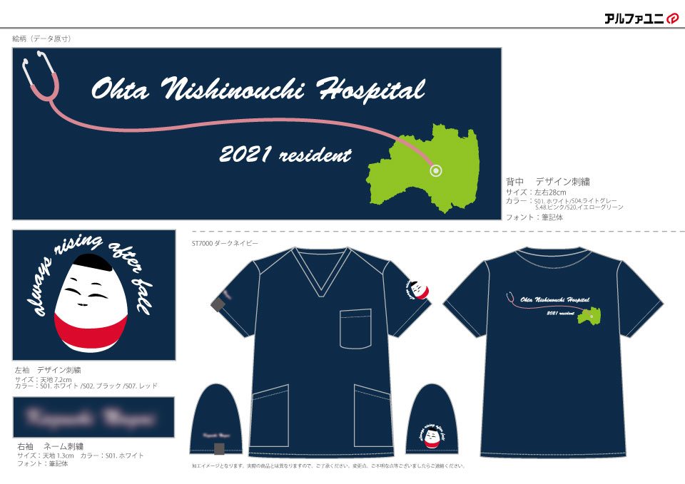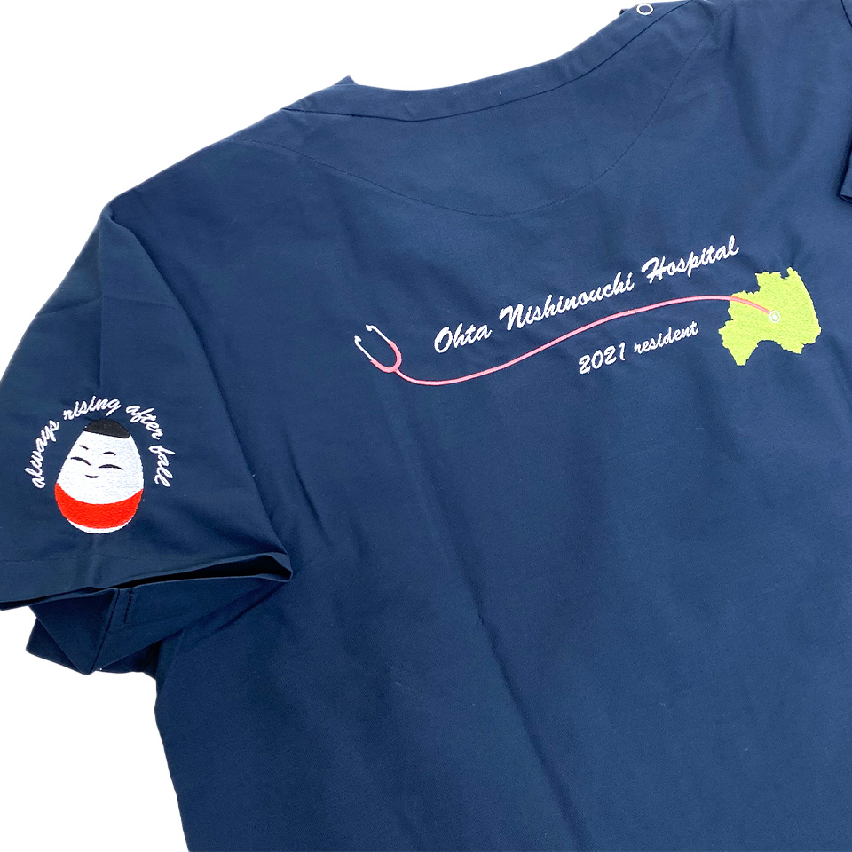 太田西ノ内病院2021年研修医様スクラブ左袖刺繍デザインのご紹介です。