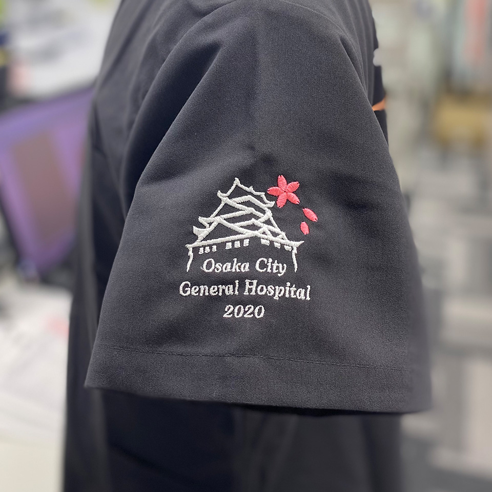 デザイン刺繍 大阪市立総合医療センター2020様 Cランク円形(丸型)デザイン建物花袖 大阪市立総合医療センター2020様スクラブロゴマーク刺繍デザインのご紹介です。このたびは製作のご依頼ありがとうございました。 このデザインについて 【刺繍加工のポイント】 桜の花びらについて 加工イメージは1色ベタで表現されていますが、実際の刺繍は1枚1枚花びらを別のオブジェクトとして打ち込んでいますので、 加工イメージよりも立体的に仕上がっています。 この点がプリントと刺繍の大きな違いで、1色であっても針の動き(糸の向き)で仕上がりが大きく変わるポイントです。 刺繍位置 :左袖 刺繍サイズ:天地7cm 刺繍カラー:2色 ホワイト・ピンク その他加工:背中2色シルクプリント 使用スクラブ:カゼン(KAZEN) 133 スクラブ(男女兼用) この記事をシェア
