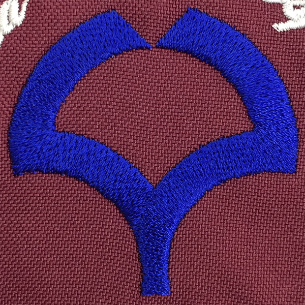 大阪大学のシンボルマークの刺繍について、大柄なデザインではありますが、刺繍の目を細かく、高密度に仕上げています。