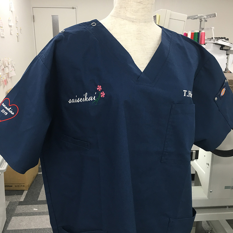 デザイン刺繍 済生会習志野病院様デザイン1 かわいい胸花 済生会習志野病院様スクラブロゴマーク刺繍デザインのご紹介です。 このデザインについて 【刺繍加工のポイント】 済生会マークを表現している花弁と、枝の部分はかなり細く細かいデザインでしたが、リアル感を出すことできました。 刺繍位置 :右胸 刺繍サイズ:左右10cm 刺繍カラー:3色 S01.ホワイト・S48.ピンク・S18.グリーン 使用スクラブ:Dickies 7033SCスクラブ カラー/シールズ・ガンメタ他 この記事をシェア