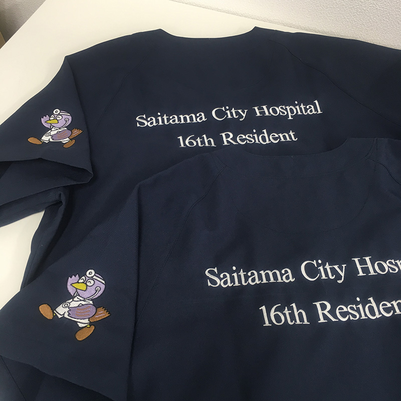 デザイン刺繍 さいたま市立病院研修医様 Cランクカラフルかわいいキャラクター聴診器背中袖複雑タイプ さいたま市立病院2020年研修医様スクラブロゴマーク刺繍デザインのご紹介です。製作のご依頼ありがとうございました。 このデザインについて 【刺繍加工のポイント】 こちらのコバトンはオブジェクトが重なりあっており、それぞれのオブジェクトの糸密度を高くしているので、刺繍型のデータ上問題がなくても、それぞれのオブジェクトがずれてしまうことがあります。 よって、弊社では試し打ちをしながら型の修正を何度か行い、量産をスタートします。 刺繍位置 :左袖 デザイン刺繍/背中 有り文字刺繍 刺繍サイズ:左袖 天地7.3cm/背中 左右25㎝(1文字2㎝) 刺繍カラー:コバトン 5色 S02.ブラック・S01.ホワイト・S14.イエロー・S31.ラベンダー・S35.ライトブラウン 背中 1色 ホワイト 有り文字刺繍書体:足付書体 この記事をシェア