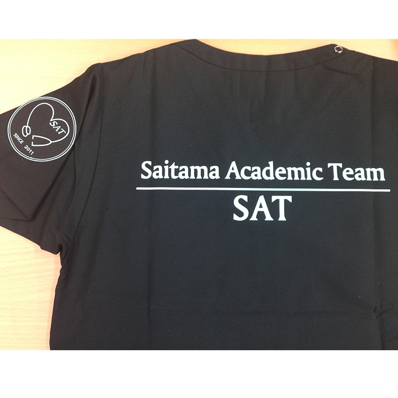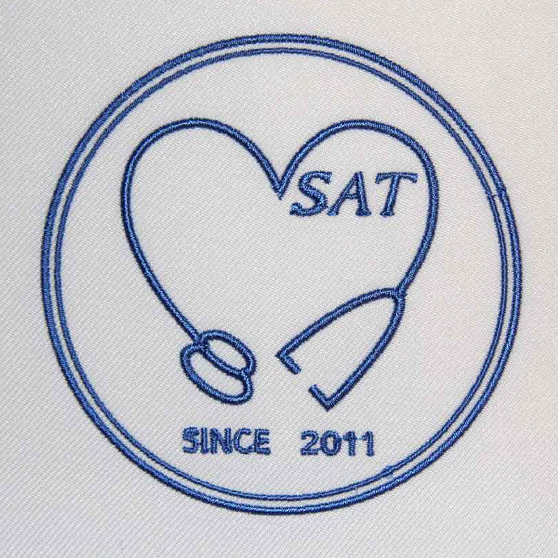 刺繍ワッペン 埼玉医科大学SAT様 Cランクシンプルハート円形(丸型)デザイン聴診器袖 埼玉医科大学SAT様スクラブ刺繍デザインのご紹介です。 製作のご依頼ありがとうございました。 このデザインについて 【刺繍加工のポイント】 2枚目の画像について補足です。ブラックのスクラブに対して、ブラックのワッペン生地を使用して作成し縫い付けております。 実際にこのような場合ばご希望のよっては、ワッペンではなく直刺繍も可能です。 刺繍にするメリットは以下の通りです。 ◆生地が縫い付けてないため、着用時に違和感がなく、生地に馴染む。 ◆ワッペンの縫い付け加工がないため、加工代が押さえられる。 実際にワッペンにするメリットについて追加で補足します。 ◆3枚目の画像(参考画像)のように円の中を白ベースにしたい場合にワッペンにすることで ブラックなど濃色な生地の場合でもホワイトページでワッペンで表現できますので、ワッペンが目出ます。 例えば、スクラブのカラーがどんな色であっても、円形の中をホワイトやブラックなど 同じ見せ方にできることは直刺繍ではできないため、メリットです。 また、補足ですが円の中をすべてホワイトやブラックの糸を打ち込むことでワッペンと同じような 配色で仕上げることができますが、円の中をすべて糸で打つと針数がかなり多くなるため、 刺繍代が通常の2~4倍くらいになってしまいます。 ◆SINCE 2011も文字サイズが一般的に再現可能文字サイズ4㎜より若干小さく、3.75㎜ですが、 ワッペン生地の上にすることで潰れを防ぐことができます。 理由は、スクラブの生地よりもワッペン用生地は生地目が安定して揃っており、また生地自体が 固く(さらには裏側にしっかり芯地で固めていることもあり)しっかりして針のブレやゆがみが少なくなるからです。 刺繍位置 :右袖 刺繍サイズ:左右8cm 刺繍カラー:ミントグリーン 生地カラー:ブラック その他加工:背中1色シルクプリント ホワイト この記事をシェア