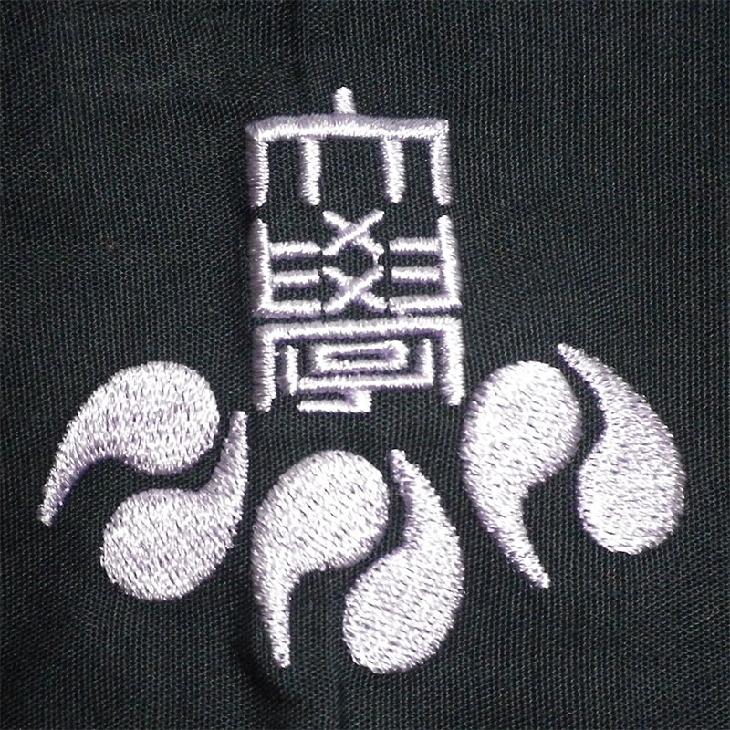 巴の刺繍の糸の向きがすべて同じ向きになっていません。巴の向きに合わせた向きに糸が打ち込まれています。
