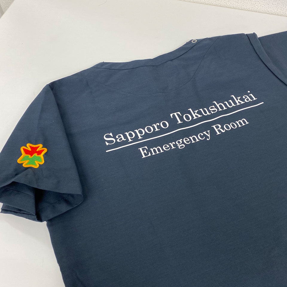 デザイン刺繍 札幌徳洲会病院救急科様 Aランク袖 札幌徳洲会病院救急科様スクラブロゴマーク刺繍デザインのご紹介です。このたびは製作のご依頼ありがとうございました。 このデザインについて 【刺繍加工のポイント】 徳洲会のマークの刺繍については、サテン打ち(アウトライン)とたたみ打ち(マークの中)がバランス良く盛り込まれている刺繍デザインです。 刺繍位置 :左袖 刺繍サイズ:左右4cm 刺繍カラー:3色 S07.レッド・S19.ライム・S12.ゴールドイエロー 徳洲会病院様のシンボルマークは刺繍型があるので、型代無料で刺繍ができます。 その他加工:背中1色シルクプリント この記事をシェア