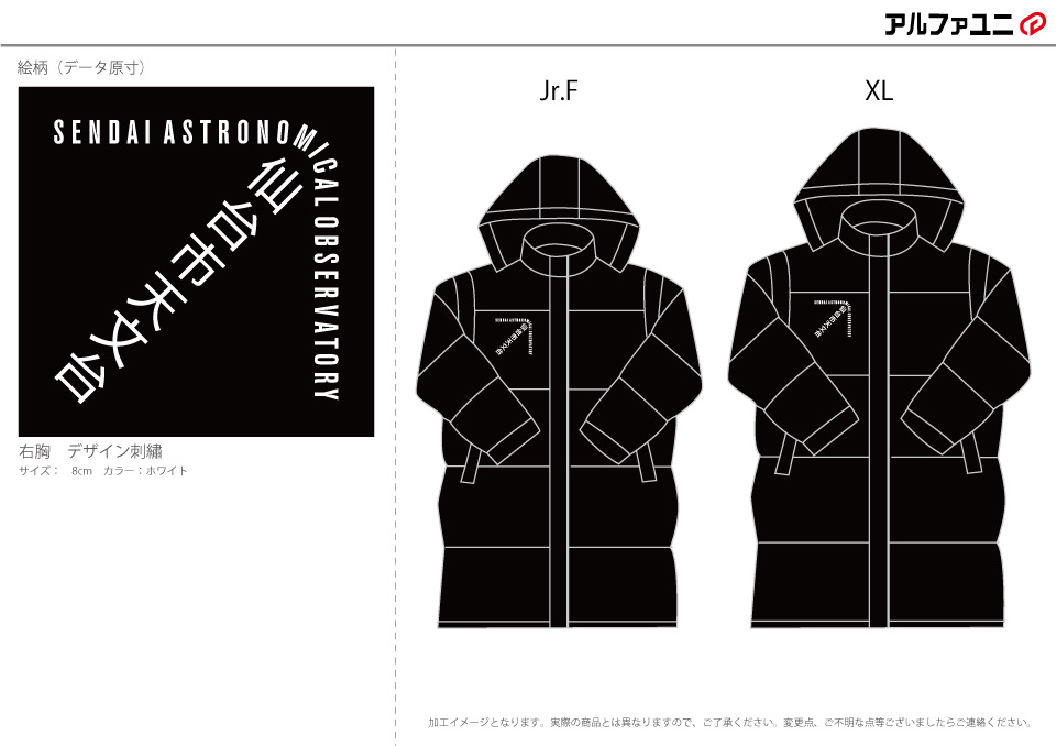 デザイン刺繍 仙台市天文台様 MJ0066 1色Cランクかっこいいシンプル胸 仙台市天文台様ベンチコートロゴマーク刺繍デザインのご紹介です。このたびは製作のご依頼ありがとうございました。 このデザインについて 【刺繍加工のポイント】 中綿入りの厚めの生地の場合、糸が食い込んで全体的に柄が細くなるため、縮みを補正して刺繍型を作成します。 刺繍位置 :右胸 刺繍サイズ:左右8cm 刺繍カラー:1色 ホワイト 使用ベンチコート:MJ0066 ライトベンチコート この記事をシェア