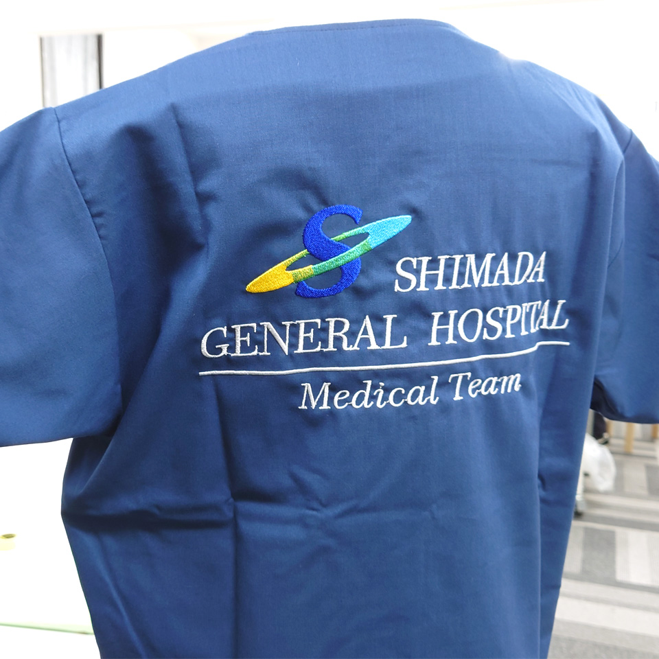 デザイン刺繍 島田総合病院2022様 7033SC CランクDランク刺繍動画あり背中胸複雑タイプ 島田総合病院2022様スクラブロゴマーク刺繍デザインのご紹介です。 このたびは製作のご依頼ありがとうございました。 このデザインについて 【刺繍加工のポイント】 お客様のご要望により、グラデーション表現に近い形で刺繍をしました。 グラデーション部分はそれぞれ単色の糸を3色組み合わせて、打ち込みの強弱をつけることで再現しています。 さらに色数を増やすことで精度を上げることは可能ですが、刺繍型作成のコストや刺繍加工時間を考慮すると、こちらが刺繍で再現できるレベルとなります。 糸密度はかなり高く設定しておりますので、立体感がある仕上がりになりました。 刺繍位置 :右胸 デザイン刺繍/背中 デザイン刺繍/右袖 ネーム刺繍 刺繍サイズ:左右8cm/左右28cm/高さ1.3cm 刺繍カラー:4色 ロイヤルブルー・サックス・ライム・サンフラワー/5色 ロイヤルブルー・サックス・ライム・サンフラワー・ライトグレー/1色 ライトグレー 使用スクラブ:ディッキーズ(Dickies)7033SC スクラブ この記事をシェア