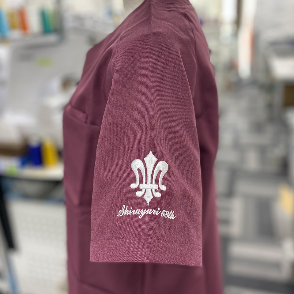 デザイン刺繍 白百合学園同窓生様 MZ-0021 1色Bランク円形(丸型)デザイン校章袖 白百合学園同窓生様スクラブロゴマーク刺繍デザインのご紹介です。このたびは製作のご依頼ありがとうございました。 このデザインについて 【刺繍加工のポイント】 すべてサテン打ちで仕上げましたが、一般的なサテン打ちとは違います。 具体的にはマークセンターの幅の太い部分は太すぎるため、スプリットと言って、間の部分を重ねて交互に針を動かしています。 たたみにしてしまうと光沢感がなくなるのですが、この手法によって幅広い柄でも、光沢があり、立体感のある仕上がりにできています。 スクラブ刺繍位置:左袖デザイン刺繍/右袖ネーム刺繍 スクラブ刺繍サイズ:左袖デザイン刺繍 天地6.5cm/右袖ネーム刺繍 高さ1.3cm スクラブ刺繍カラー:左袖デザイン刺繍 1色 ホワイト/右袖ネーム刺繍 1色 ホワイト 使用スクラブ:MIZUNO MZ-0021スクラブ この記事をシェア
