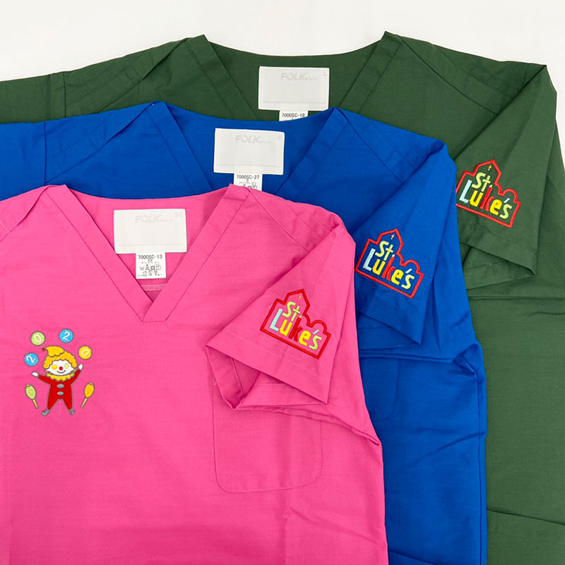 デザイン刺繍 聖路加国際病院小児科様2020年 Cランクカラフルかわいいキャラクターハート胸袖複雑タイプ 聖路加国際病院小児科様2020年様スクラブロゴマーク刺繍デザインのご紹介です。このたびは製作のご依頼ありがとうございました。 このデザインについて 【刺繍加工のポイント】 当初天地10cmを希望していましたが、運針数がかなり多くなってしまうので、 9㎝に縮小することで抑えましたが、それでも14000針を超えています。 眼のハートなど顔を構成しているオブジェクトがかなり小さく、再現できるぎりぎりのサイズとなっています。 刺繍位置 :右胸/左袖 刺繍サイズ:右胸 左右9cm、左袖 左右7㎝ 刺繍カラー:右胸 9色 レッド、サックス、イエローグリーン、ゴールドイエロー、サンフラワー、 ダークグレー、ライトグレー 左袖 5色S07.レッド、イエローグリーン、ゴールドイエロー、サンフラワー、ミントグリーン 右胸運針数:14545針 使用スクラブ1:FOLK 7000SCクラブ 19色使用 使用スクラブ2:WHISEL WH11485スクラブ 13色使用 この記事をシェア